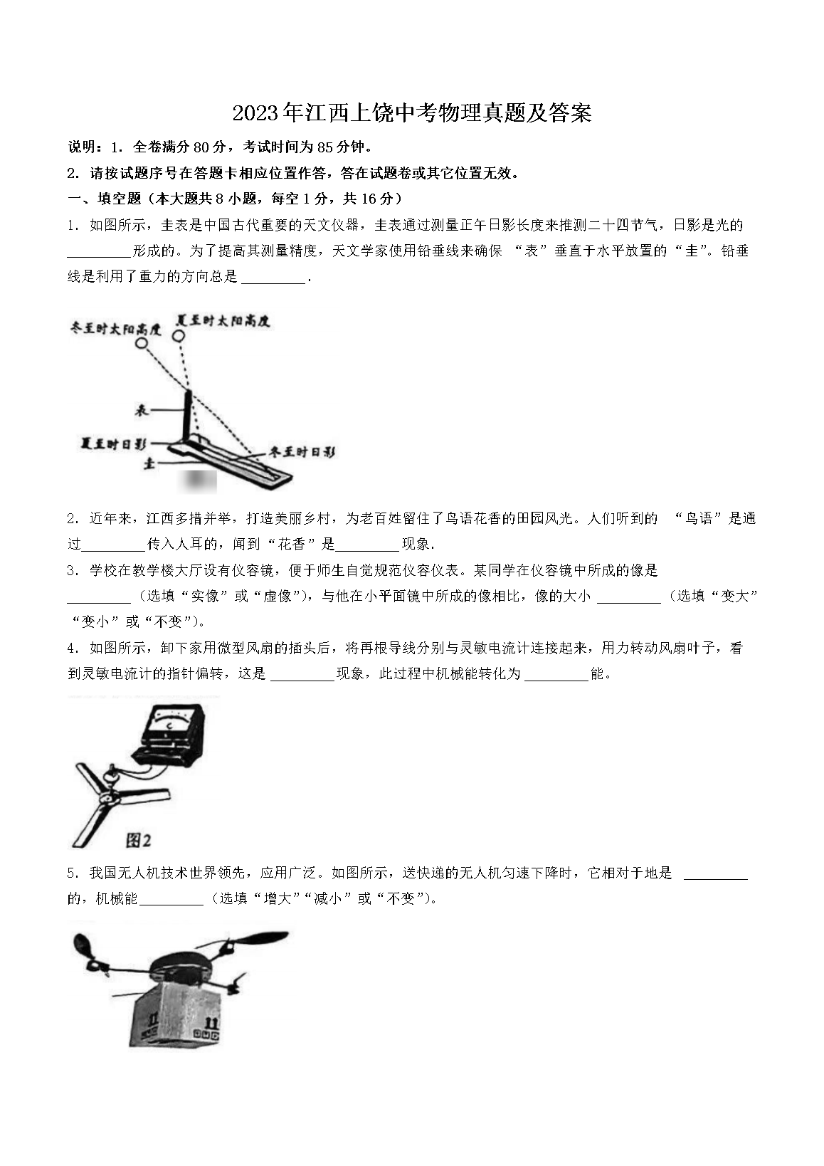 【文档预览】 文档大全网整理发布2023年江西上饶中考物理真题及答案(Word版),前五页预览如下: