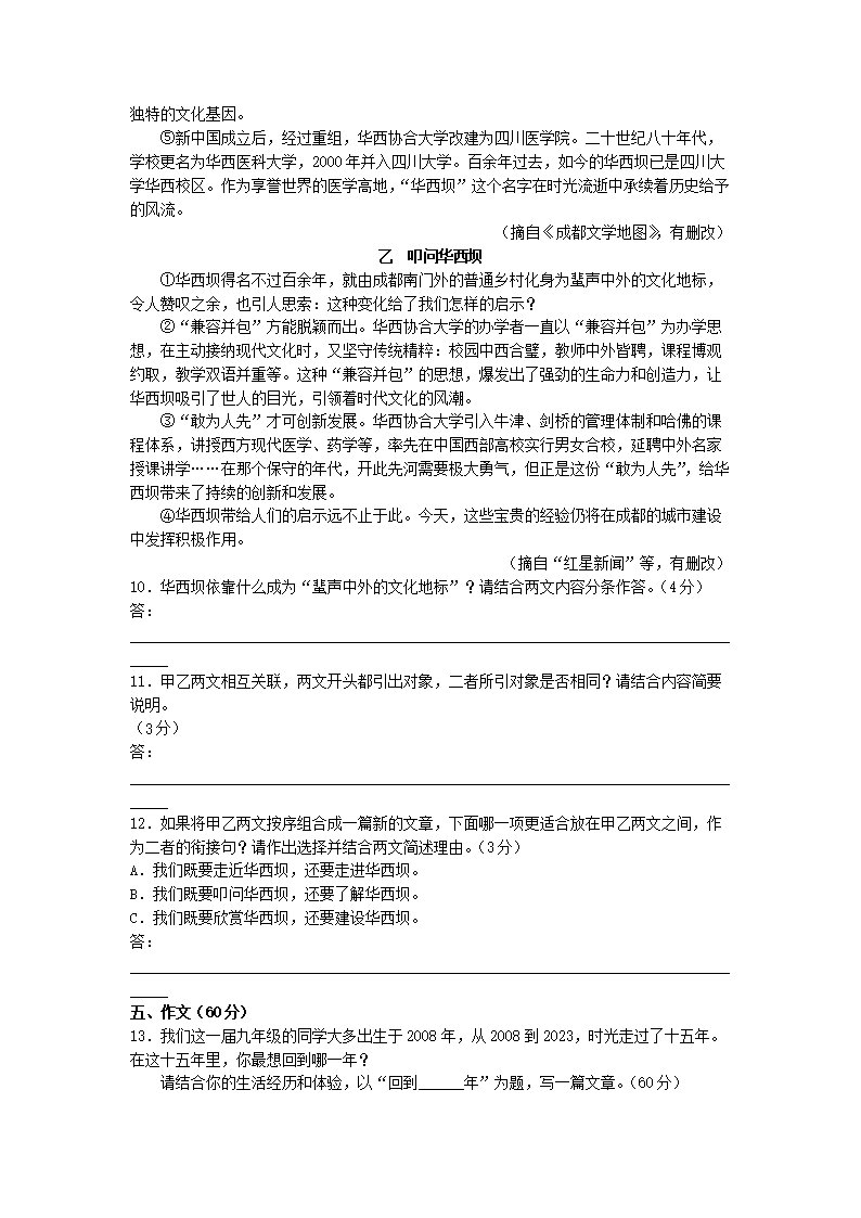 2023年四川成都中考语文试题及答案(Word版)06-16
