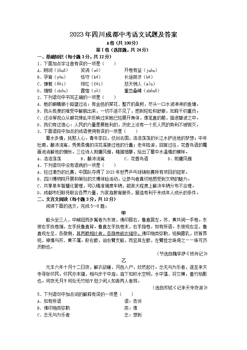 【文档预览】 文档大全网整理发布2023年四川成都中考语文试题及答案(Word版),前五页预览如下: