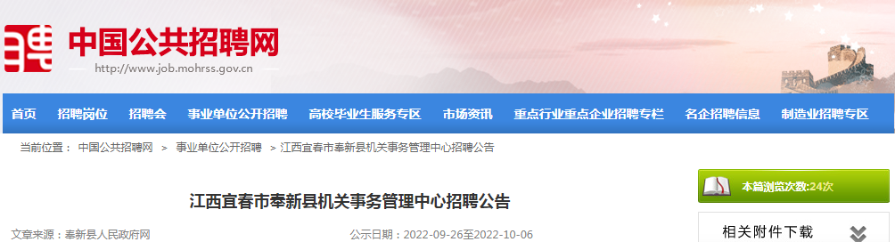 2022年江西省宜春市奉新县机关事务管理中心招聘公告09-28