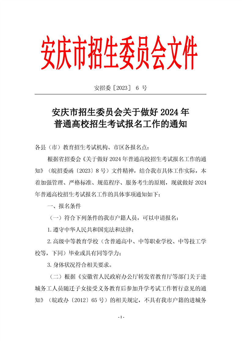 安徽安庆2024年普通高校招生考试报名工作的通知10-20