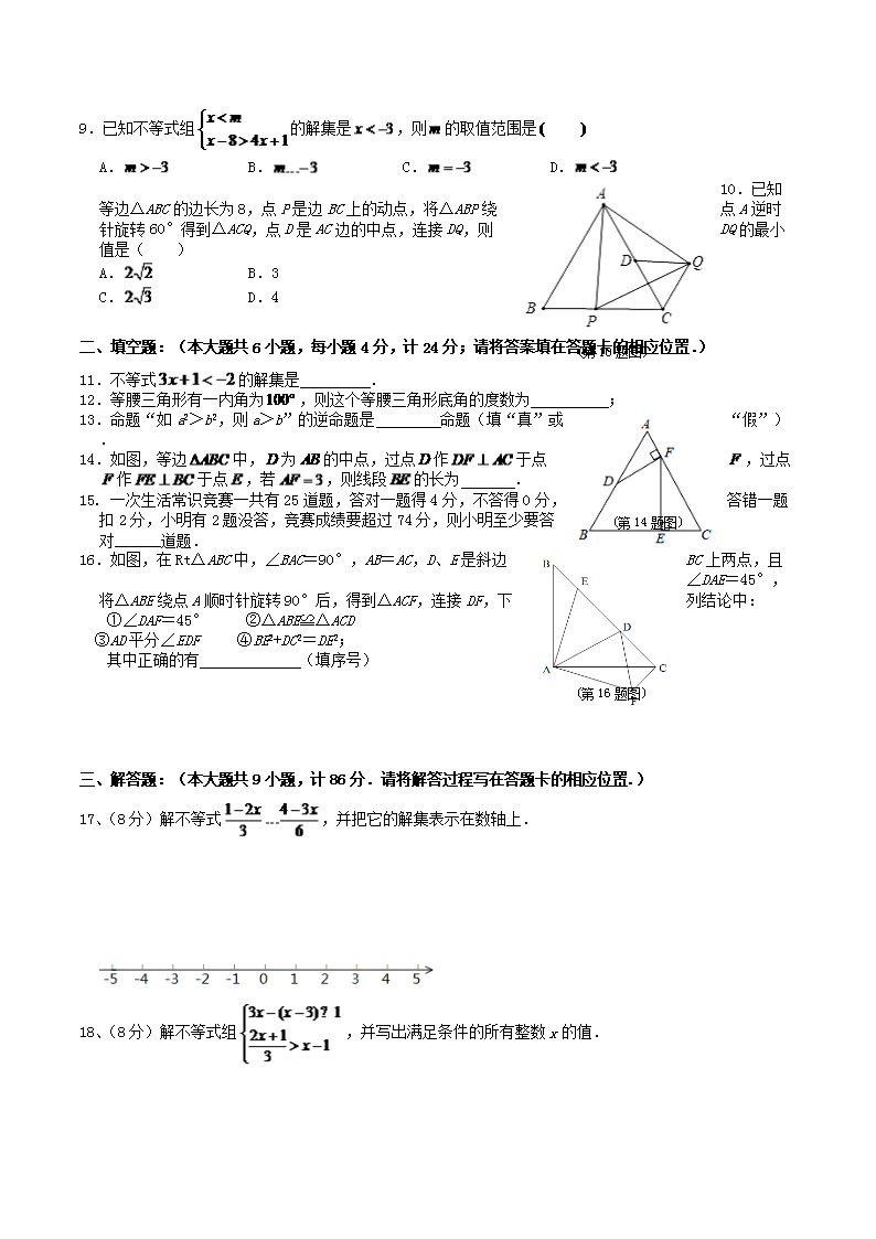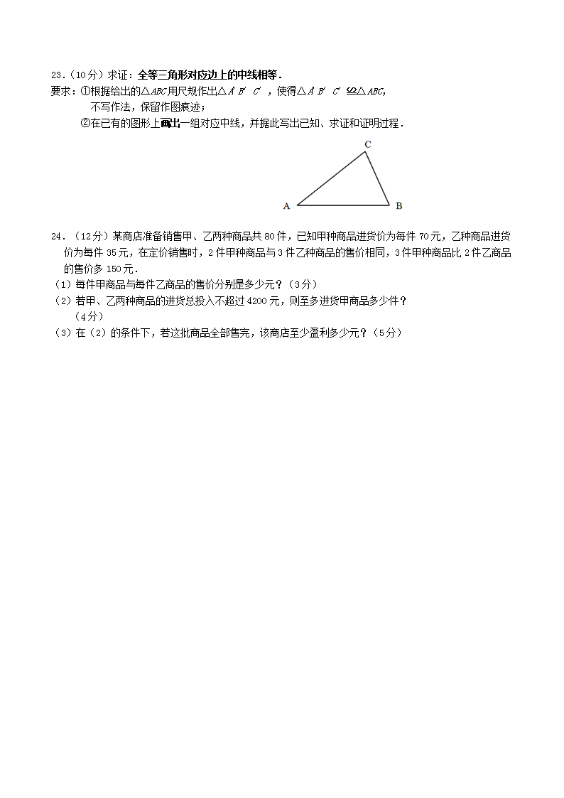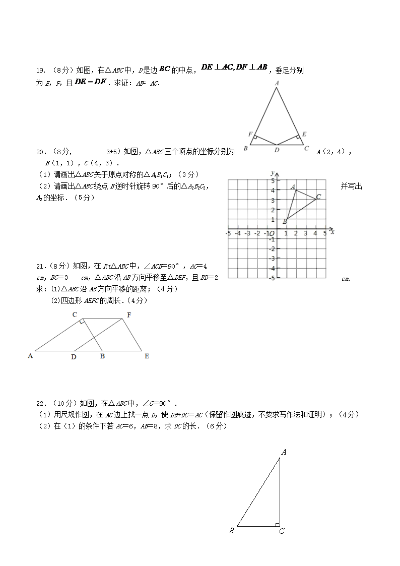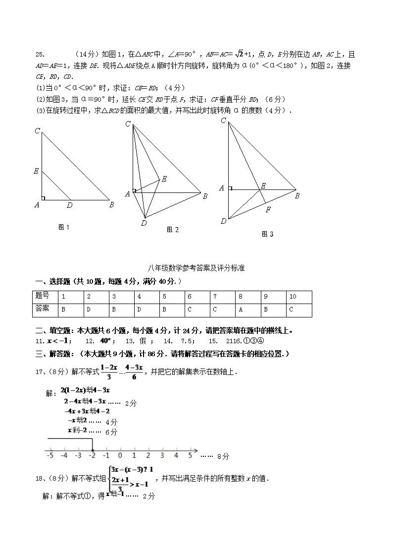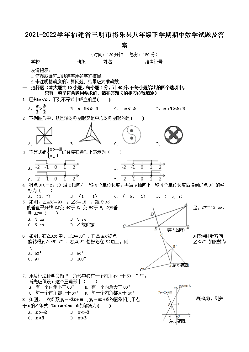 2021-2022学年福建省三明市将乐县八年级下学期期中数学试题及答案(Word版)10-20