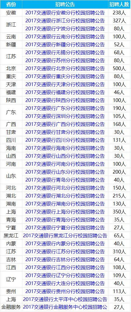 2017交通银行校园招聘4893人03-09