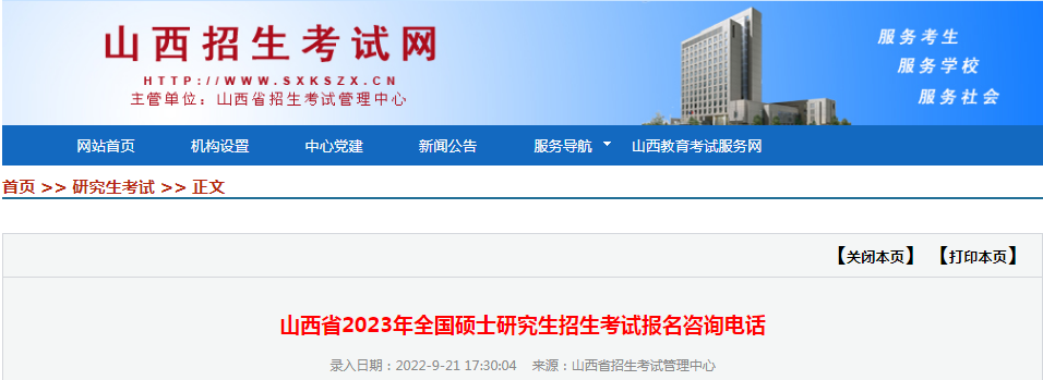 山西省2023年全国硕士研究生招生考试报名咨询电话09-22