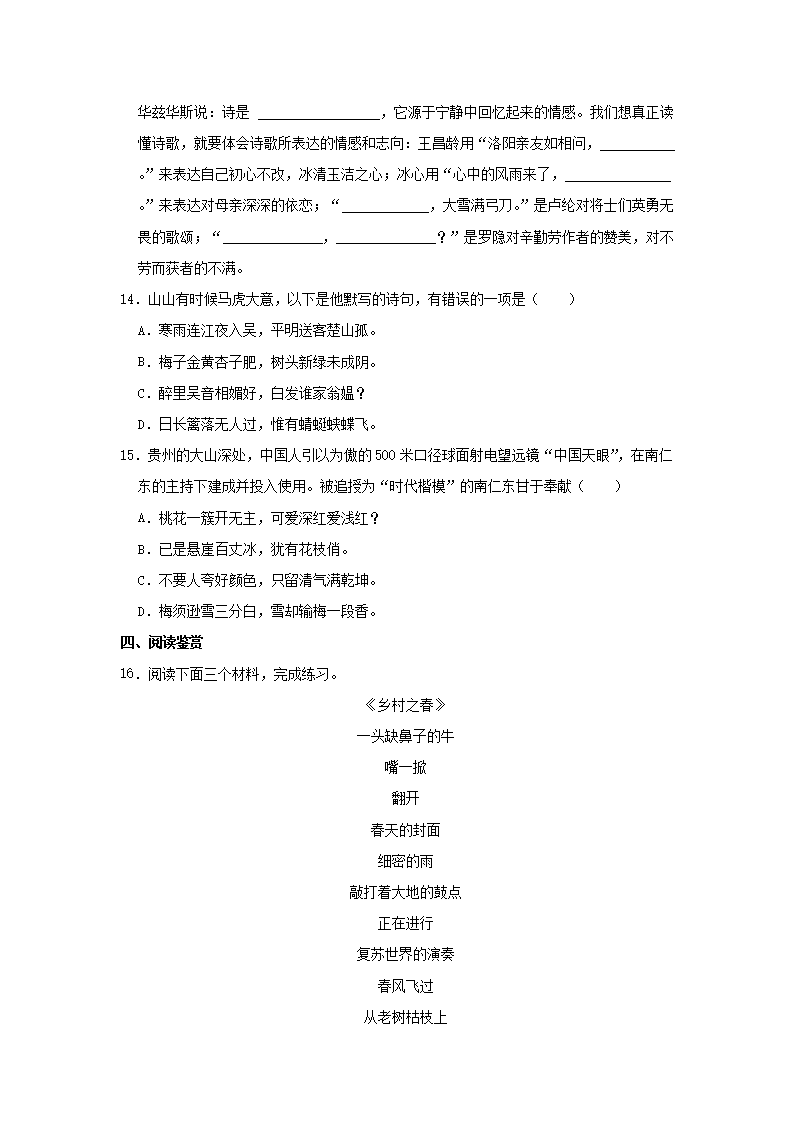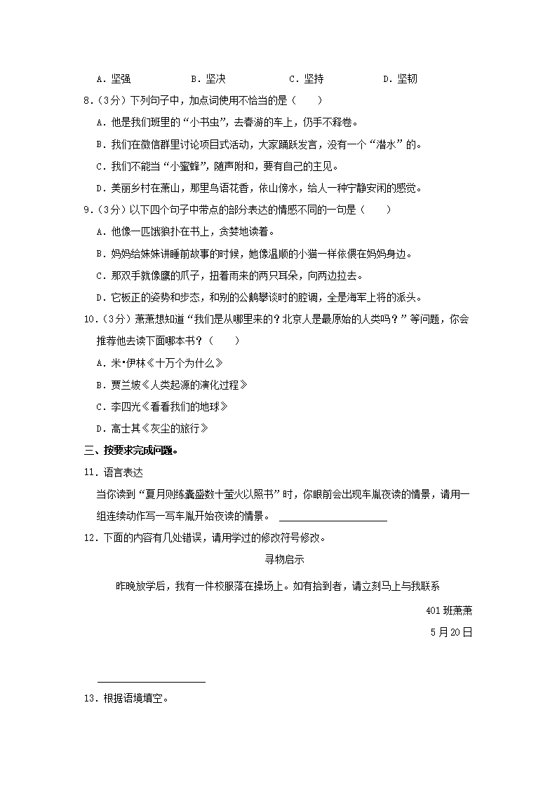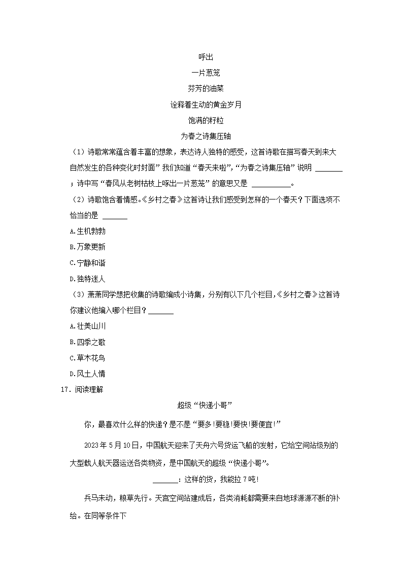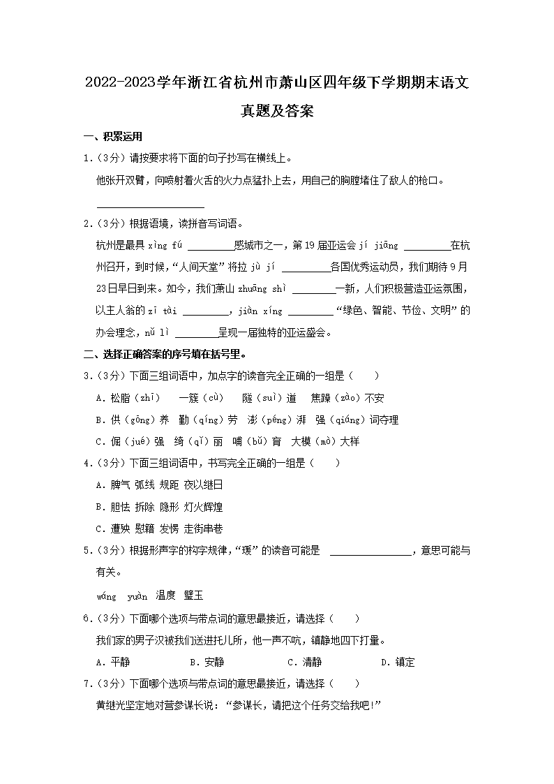 2022-2023学年浙江省杭州市萧山区四年级下学期期末语文真题及答案(Word版)10-08