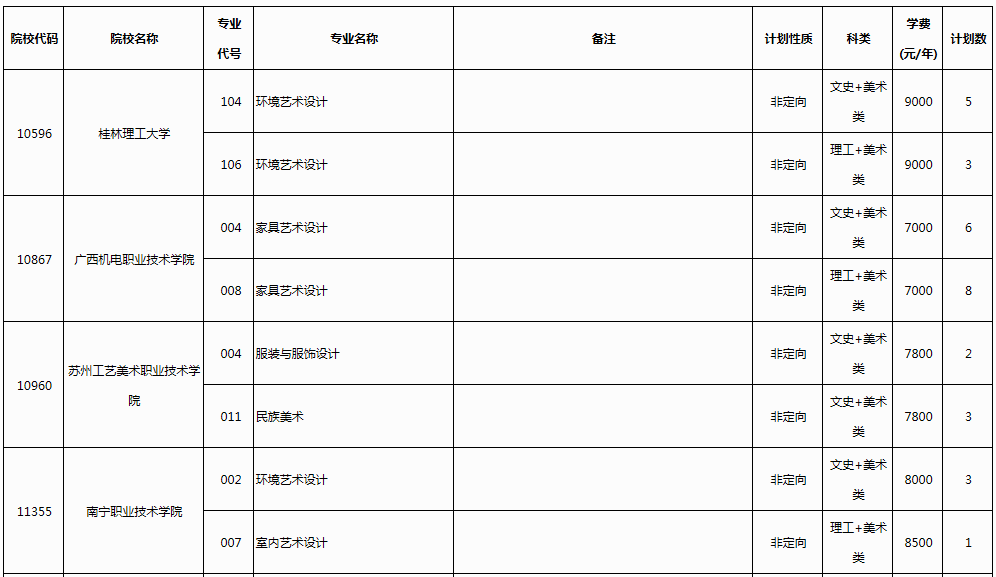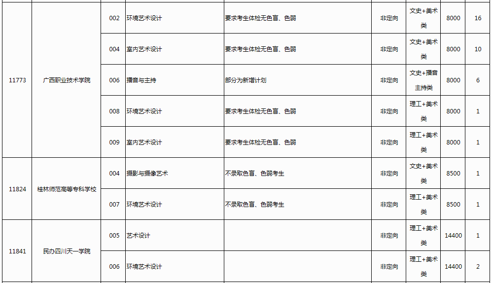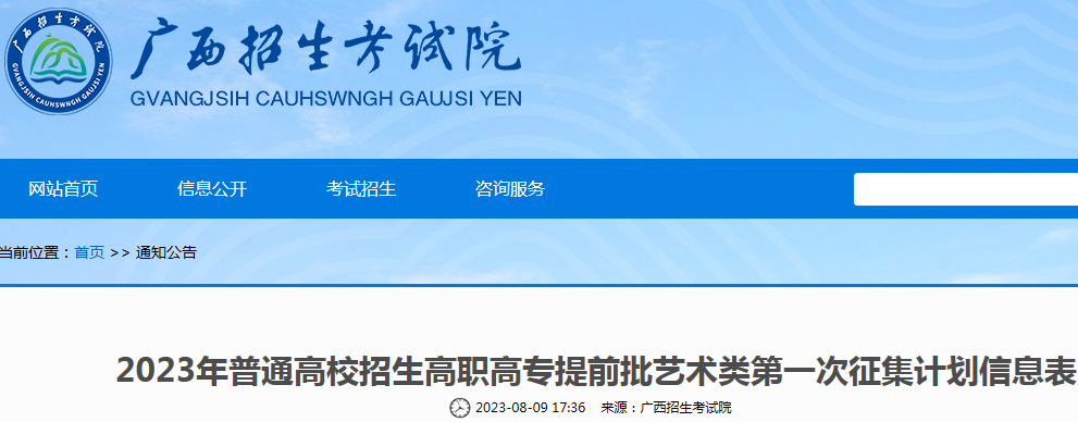 广西2023年普通高校招生高职高专提前批艺术类第一次征集计划信息表公布08-11