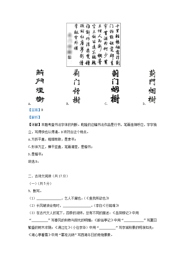 2020-2021学年北京西城区初三第一学期语文期末试卷及答案(Word版)07-15