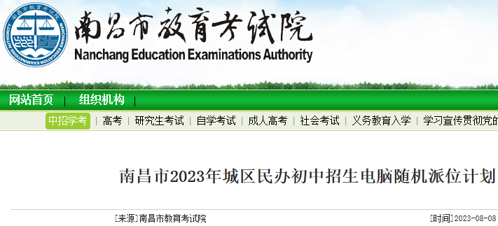江西南昌2023年城区民办初中招生电脑随机派位计划08-10