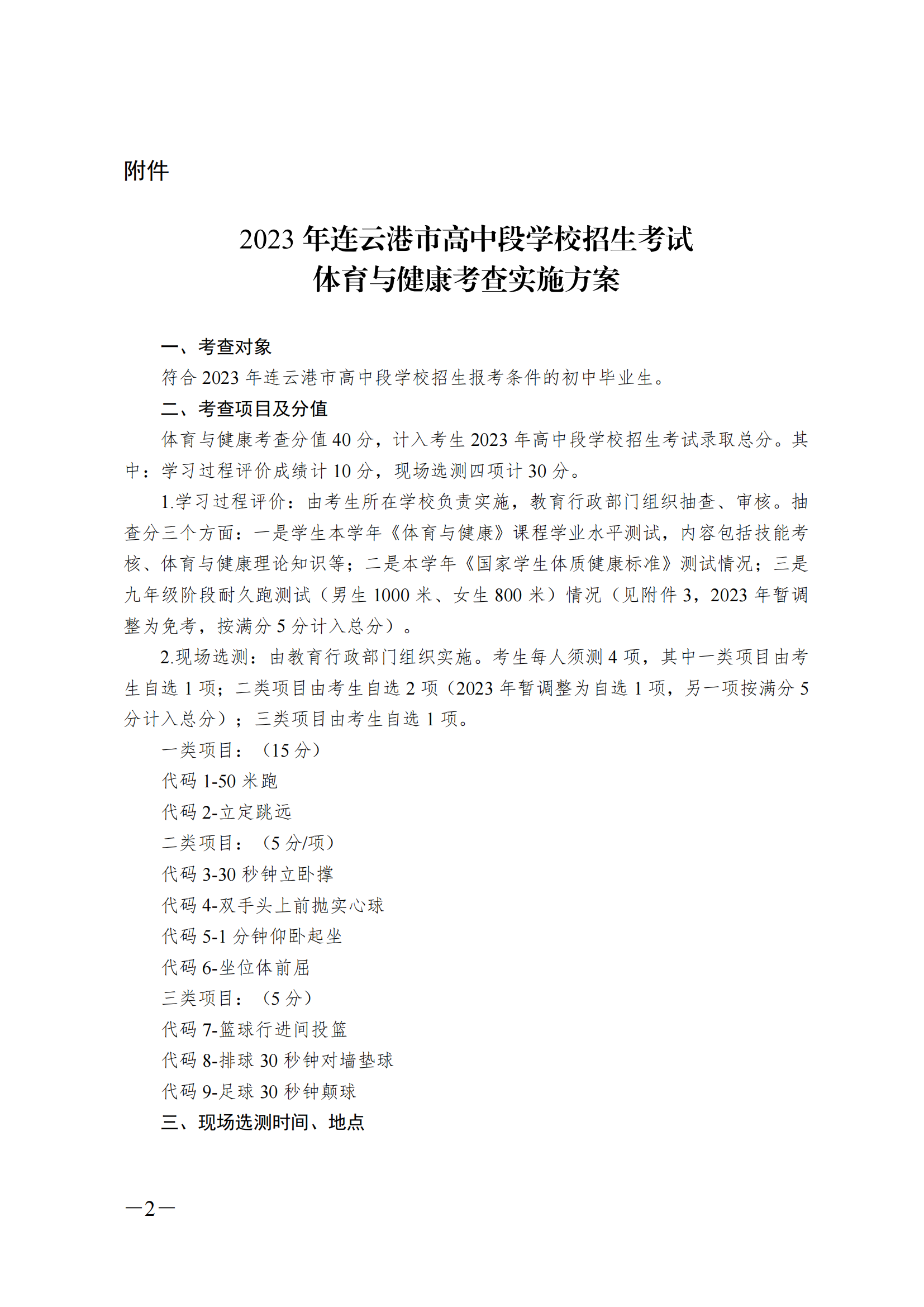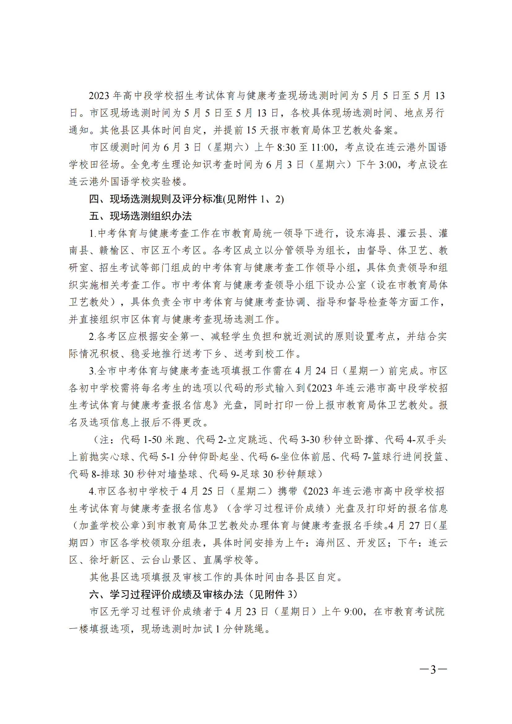 附件:《2023年连云港市高中段学校招生考试体育与健康考查实施方案》