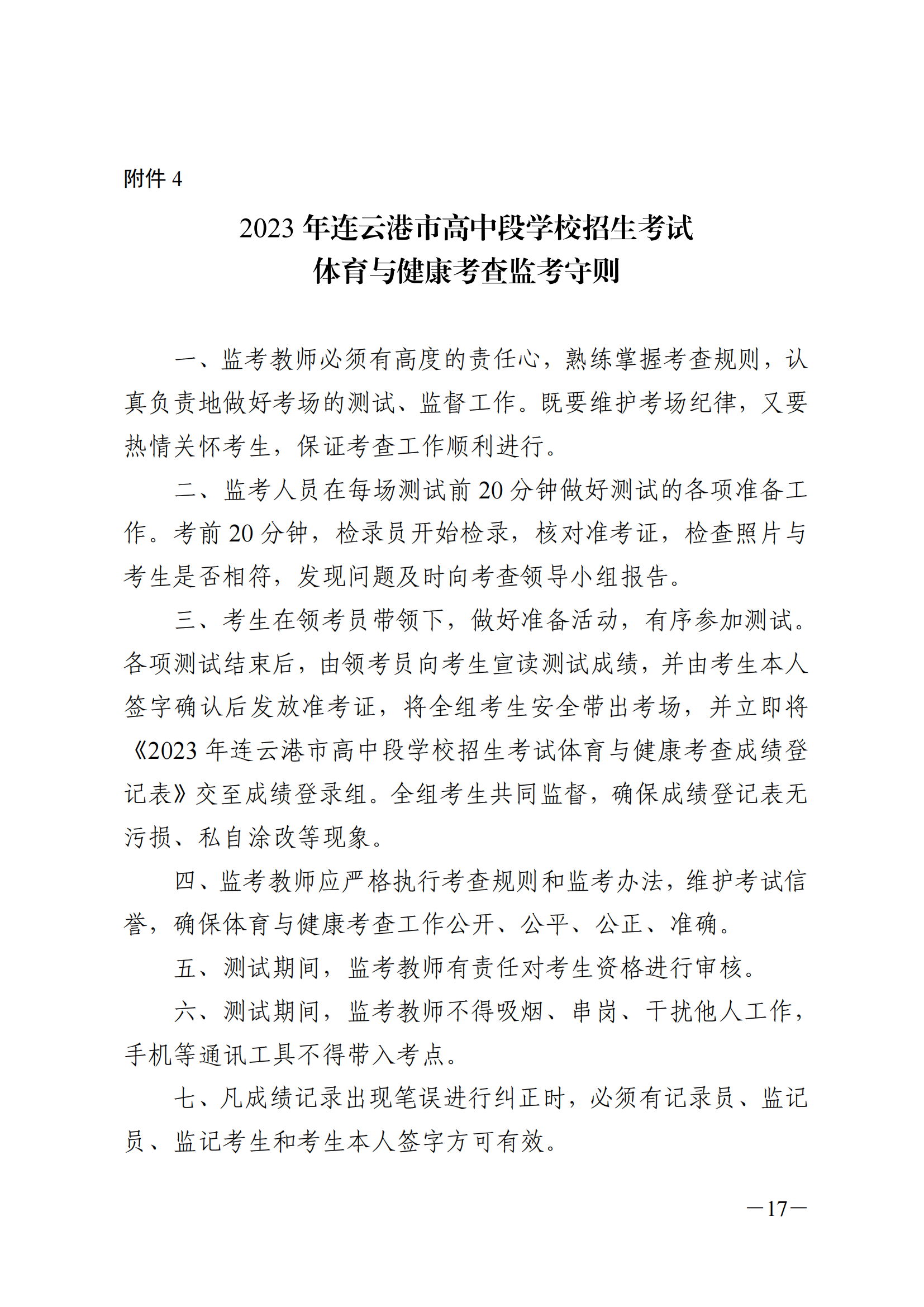 原文标题:关于印发《2023年连云港市高中段学校招生考试体育与健康考查实施方案》的通知
