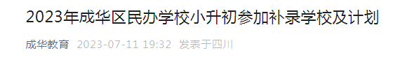 2023年四川成都成华区民办学校小升初参加补录学校及计划07-13