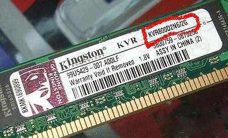 如上图所示:KVR800D2N6/2G代表这根内存条的频率是800Hz(对应的代数是2代内存),内存大小为2GB;