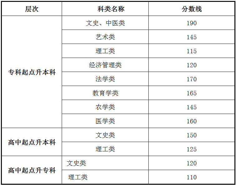 经研究审定,现将2022年我省成人高考(延考)招生录取控制分数线印发给你们,请遵照执行。