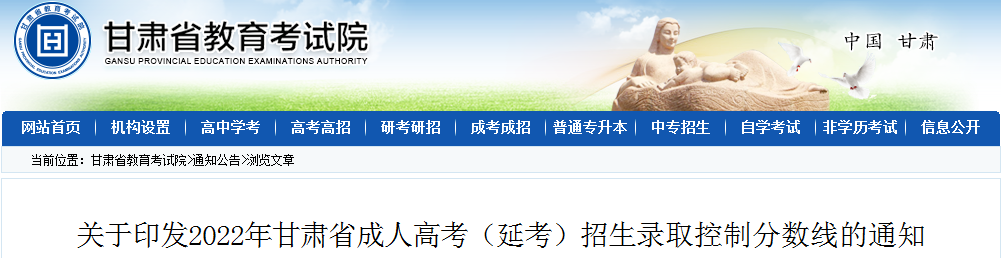 原文标题:关于印发2022年甘肃省成人高考(延考)招生录取控制分数线的通知