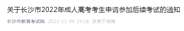 2022年成人高考已于11月5日至6日举行。根据湖南省教育考试院的统一安排,拟对因疫情原因未能正常参考的考生实施延考。今年在我市除浏阳市以外的八个县(市)区指定考点未能参考的考生(原浏阳市考区的考生无需登记报备),符合下列条件的可以申请延考: