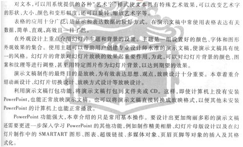 关于幻灯片的内容制作,本章主要介绍了如何在幻灯片中插入文本、图片、形状、艺术字、表格等对象。