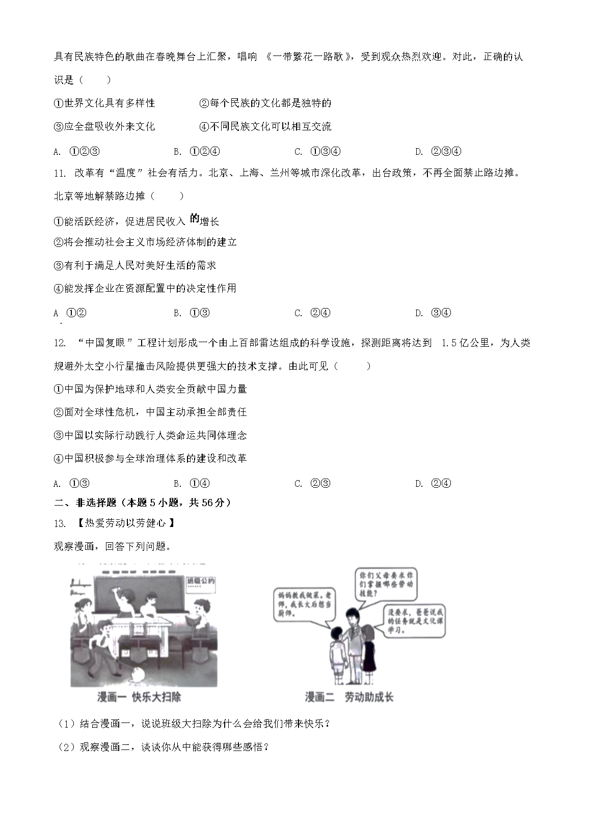 2023年安徽阜阳中考道德与法治真题及答案(Word版)06-19