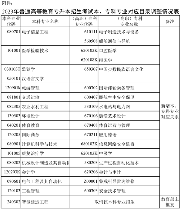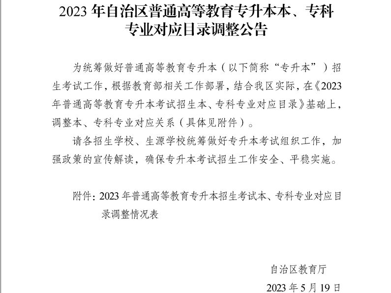 原文标题:2023年自治区普通高等教育专升本本、专科专业对应目录调整公告