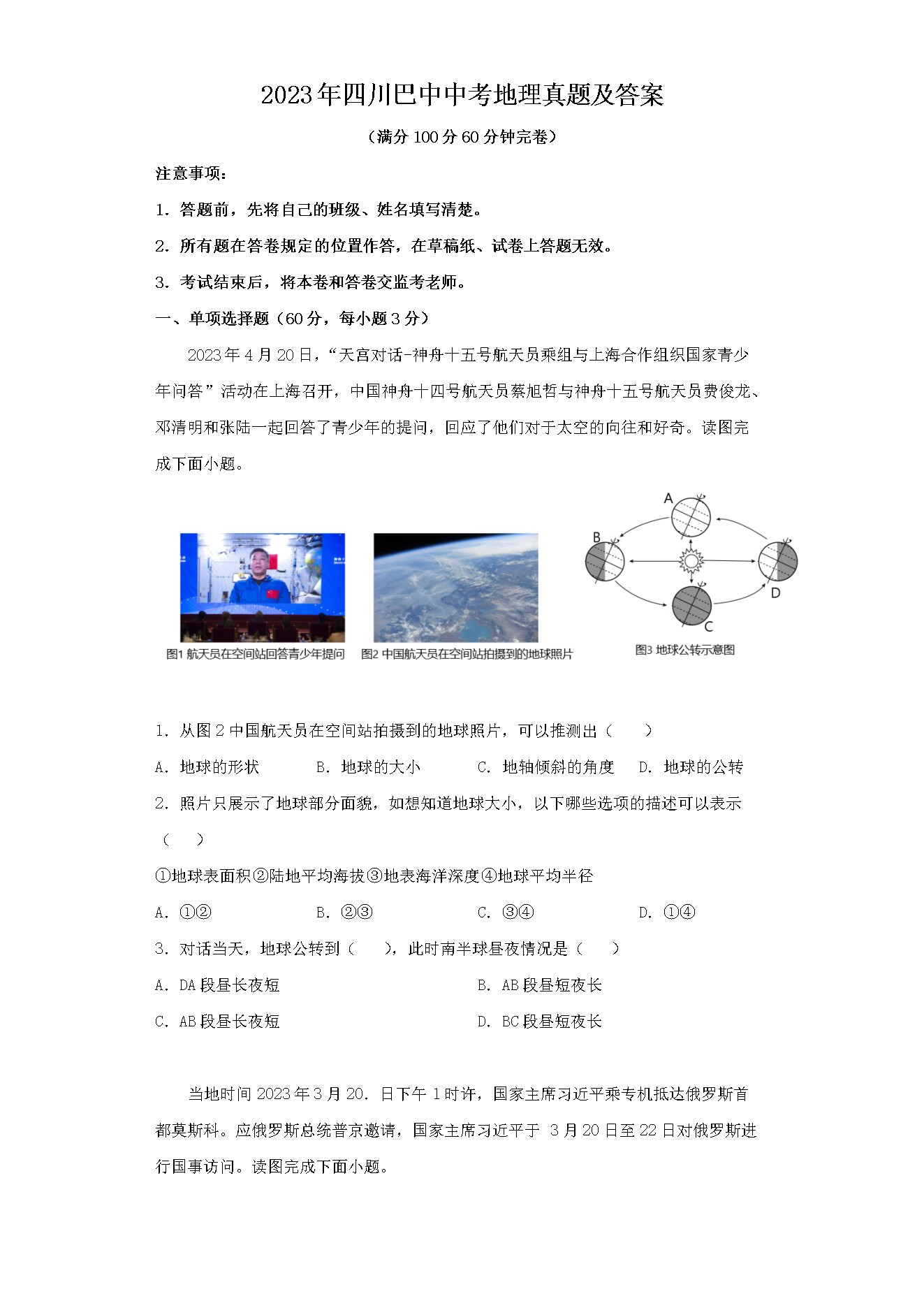 【文档预览】 文档大全网整理发布2023年四川巴中中考地理真题及答案(Word版),前五页预览如下: