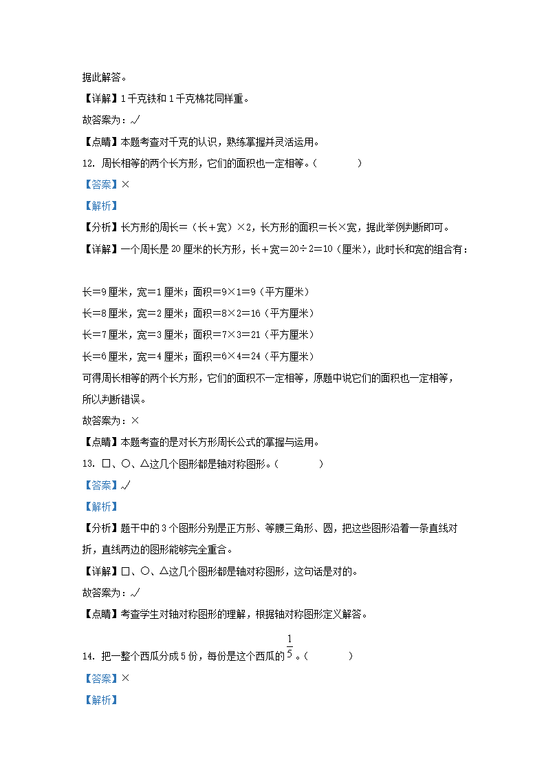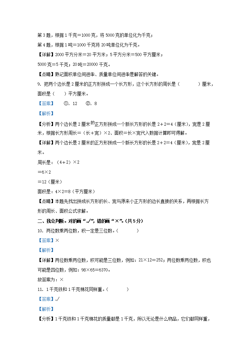 2021-2022学年广东省深圳市南山区北师大版三年级下册期末考试数学试卷及答案(Word版)08-26