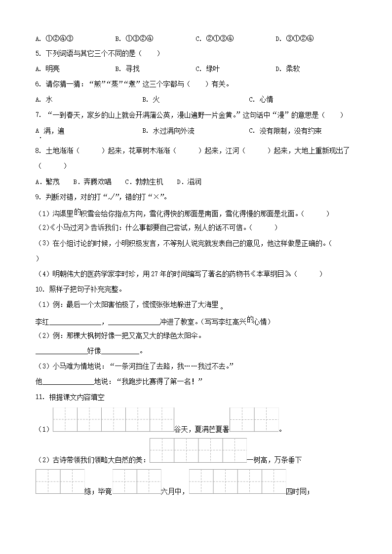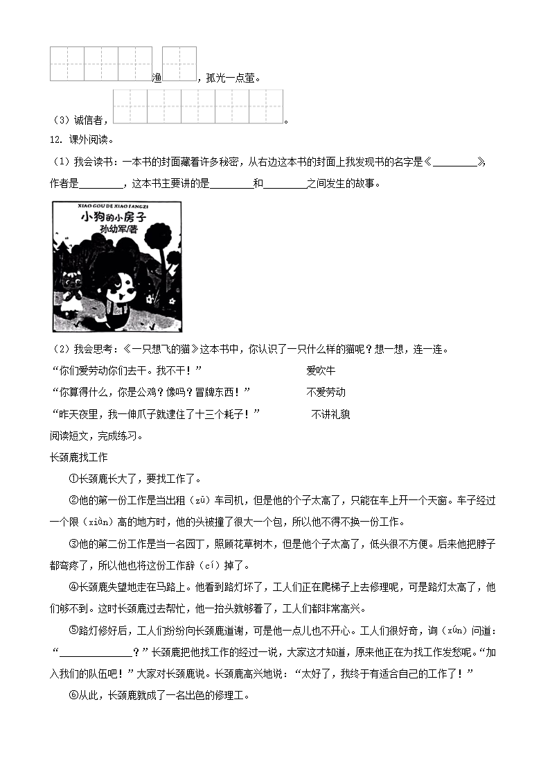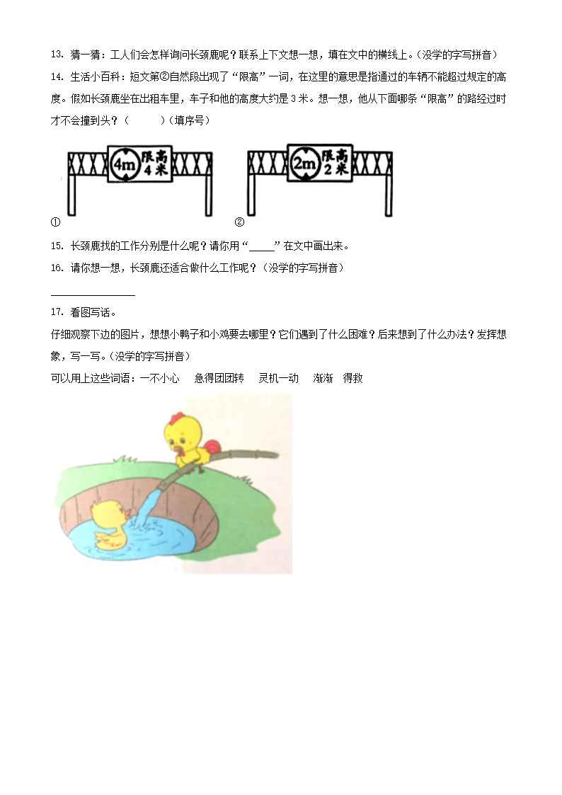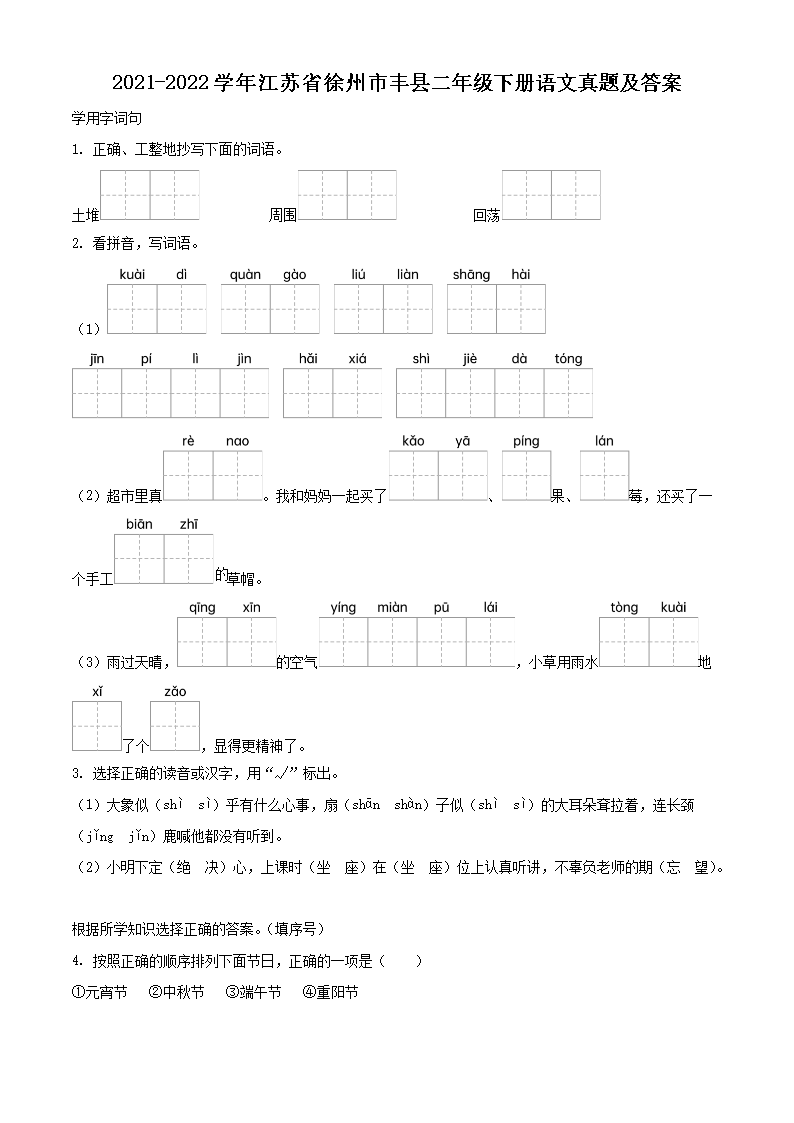 2021-2022学年江苏省徐州市丰县二年级下册语文真题及答案(Word版)06-30