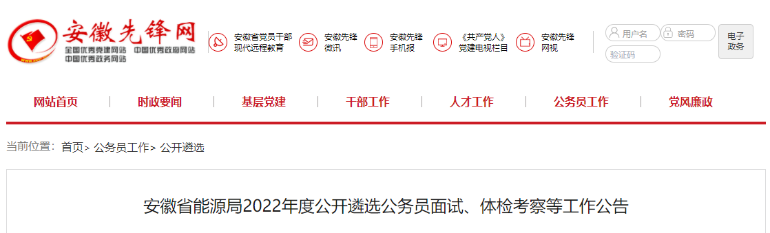 原文标题:安徽省能源局2022年度公开遴选公务员面试、体检考察等工作公告