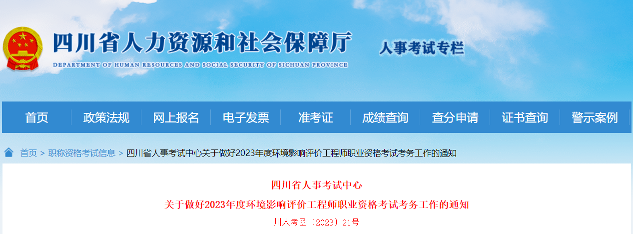 原文标题:四川省人事考试中心关于做好2023年度环境影响评价工程师职业资格考试考务工作的通知