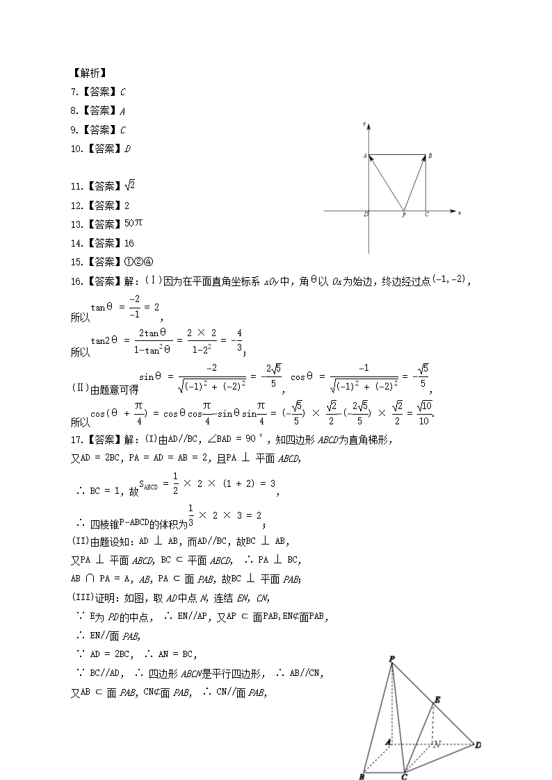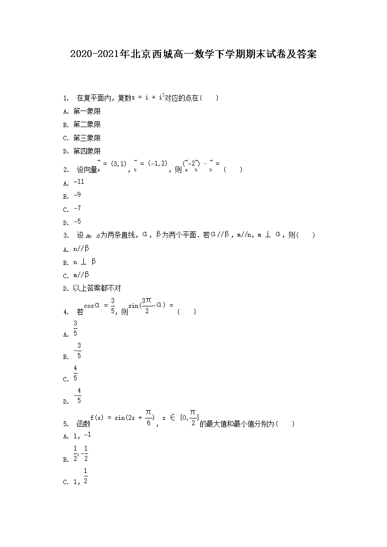 2020-2021年北京西城高一数学下学期期末试卷及答案(Word版)09-15