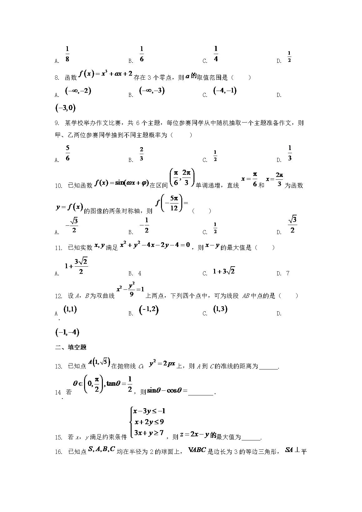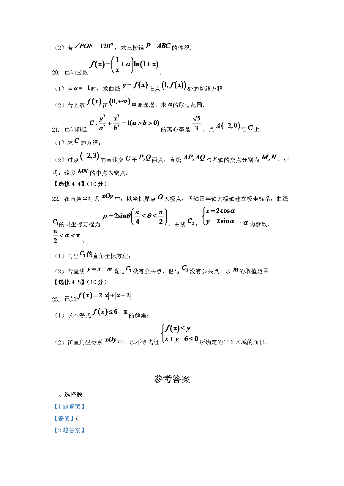 2023年宁夏高考数学(文)真题及答案(Word版)06-10