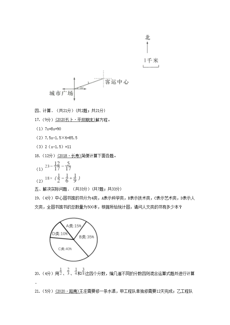 【文档预览】 文档大全网整理发布2021年西藏拉萨市六年级上册数学期末考试试卷及答案(Word版),前五页预览如下: