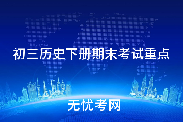【#初三# 导语】提高学习效率并非一朝一夕之事,需要长期的探索和积累。前人的经验是可以借鉴的,但必须充分结合自己的特点。影响学习效率的因素,有学习之内的,但更多的因素在学习之外。首先要养成良好的学习习惯,合理利用时间,另外还要注意"专心、用心、恒心"等基本素质的培养,对于自身的优势、缺陷等更要有深刻的认识。本篇文章是©文档大全网为您整理的《初三历史下册期末考试重点》,供大家借鉴。