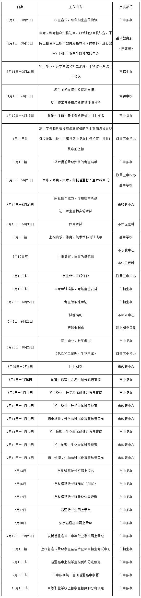 附件2:赤峰市初中毕业、升学考试及高中招生工作日程安排