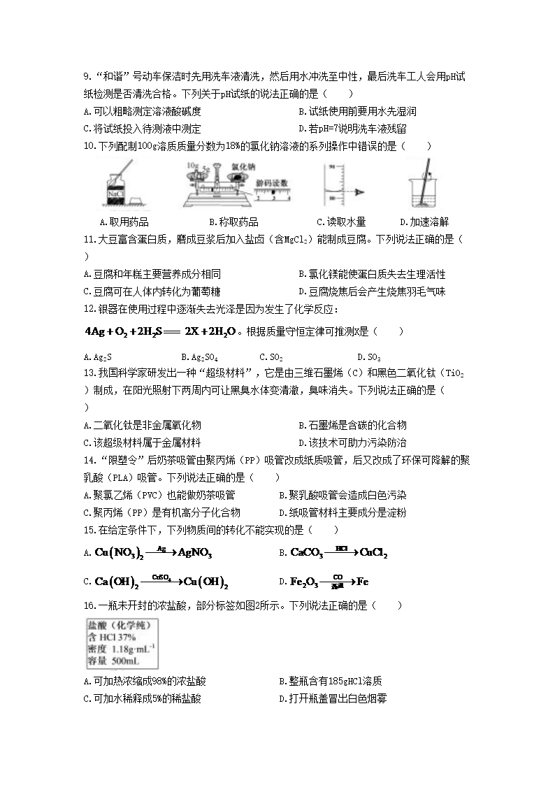 2023年江苏常州中考化学真题及答案(Word版)09-28