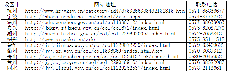 七、各设区市教育考试机构网站地址及联系电话