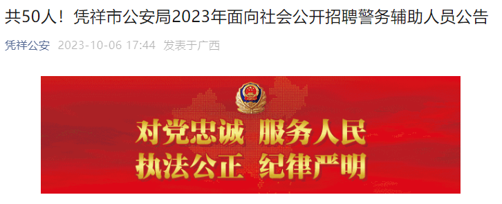 2023年广西崇左凭祥市公安局招聘警务辅助人员公告(50人)10-10