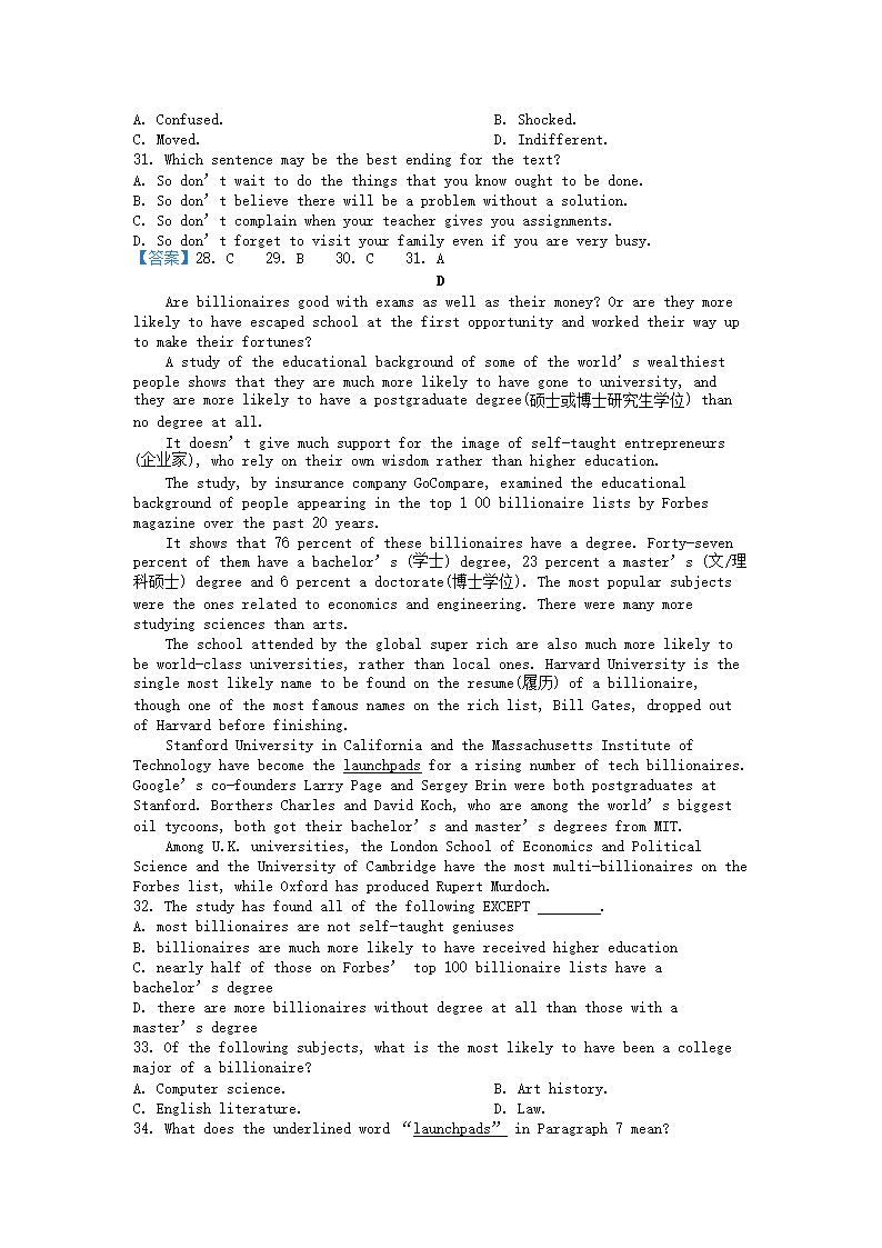 2020-2021年湖南娄底高一英语上学期期末试卷及答案(Word版)09-20