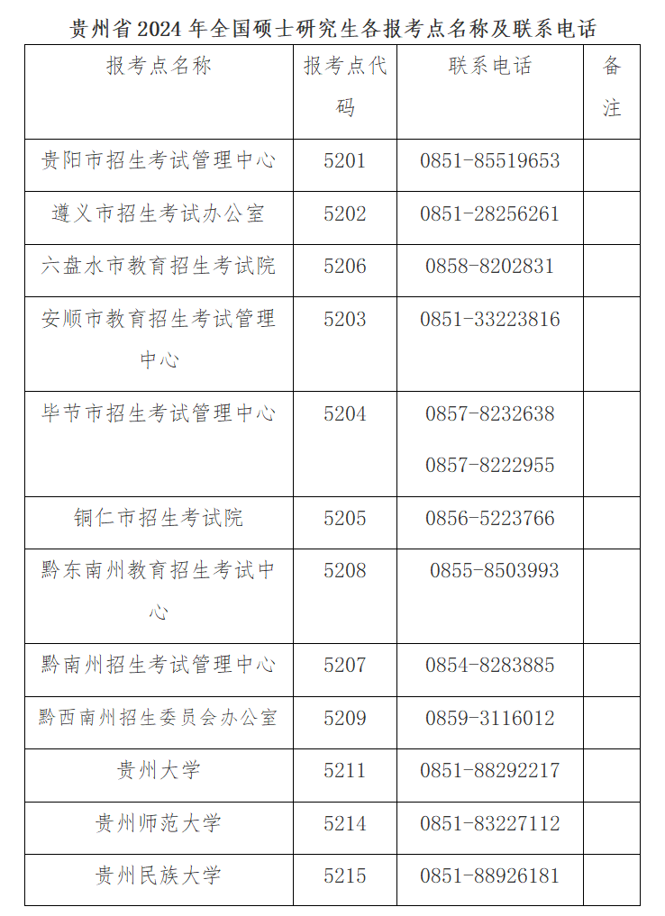 根据教育部《2024年全国硕士研究生招生工作管理规定》和《省招生委员会关于做好我省2024年全国硕士研究生招生考试工作的通知》精神,结合我省实际,现将贵州省2024年全国硕士研究生招生考试有关事项公告如下: