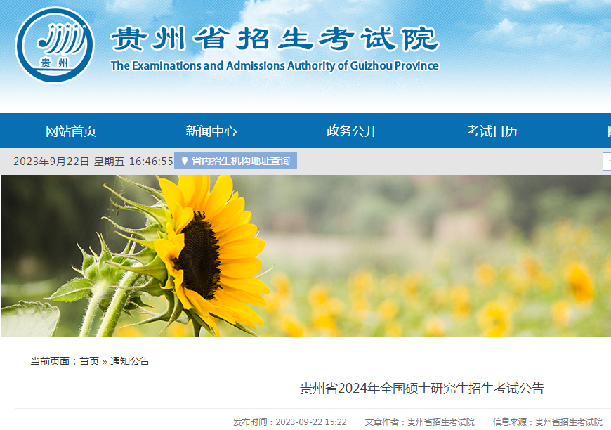贵州2024年全国硕士研究生招生考试公告09-23