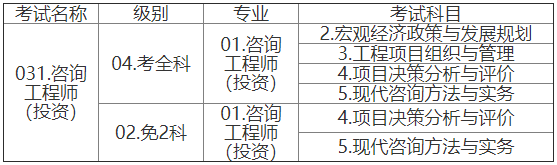 咨询工程师(投资)职业资格考试设“宏观经济政策与发展规划”(客观题)、“工程项目组织与管理”(客观题)、“项目决策分析与评价”(客观题)和“现代咨询方法与实务”(主观题)4个考试科目。