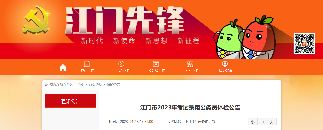 原文标题:江门市2023年考试录用公务员体检公告