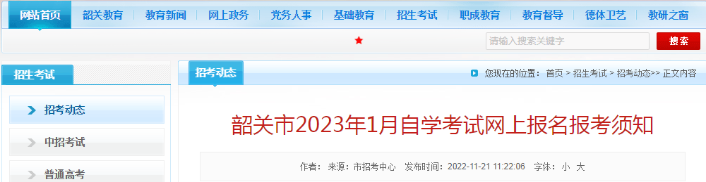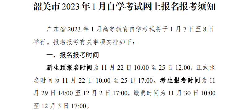 原文标题:韶关市2023年1月自学考试网上报名报考须知