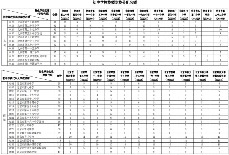 北京2023年初中学校校额到校分配名额公布07-04
