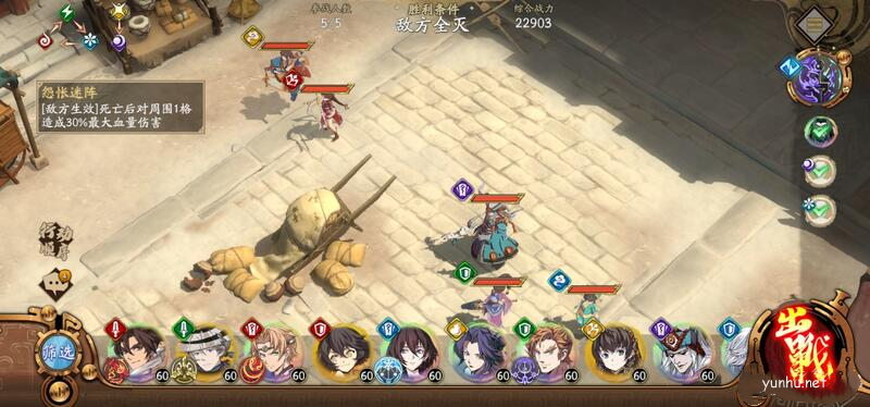 怨怅迷阵:[敌方生效]死亡后对周围1格造成30%的最大血量伤害。