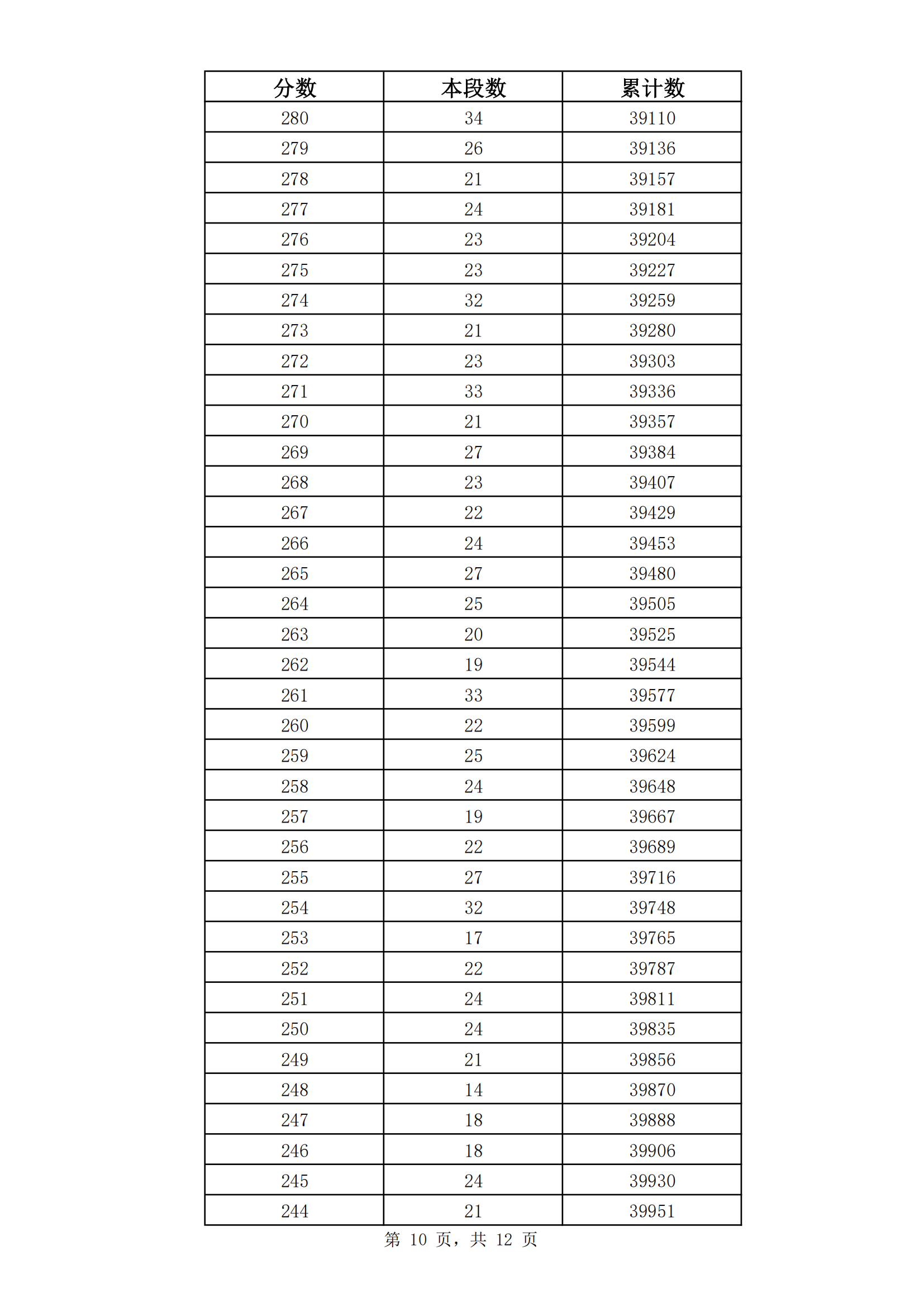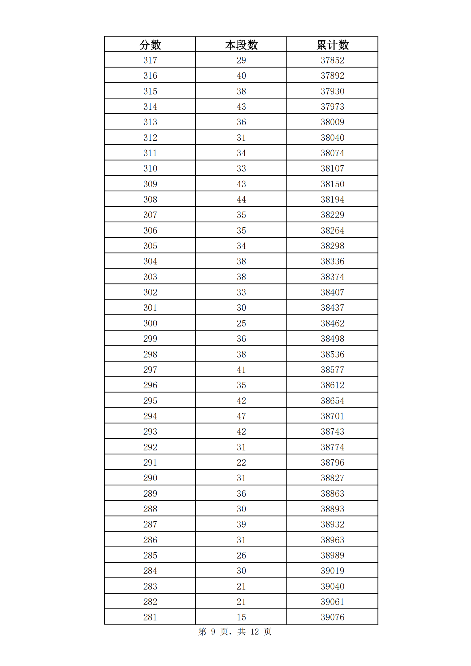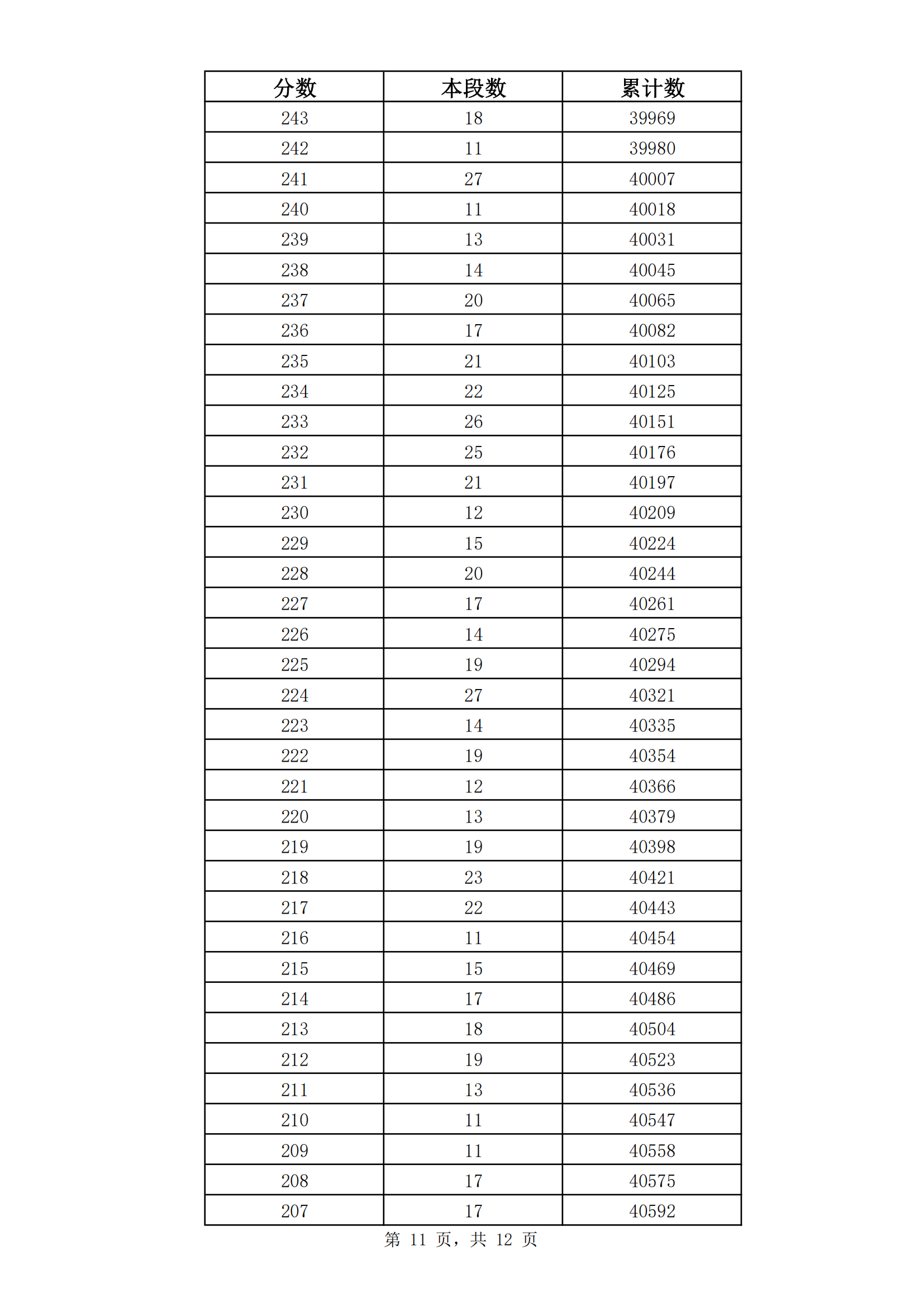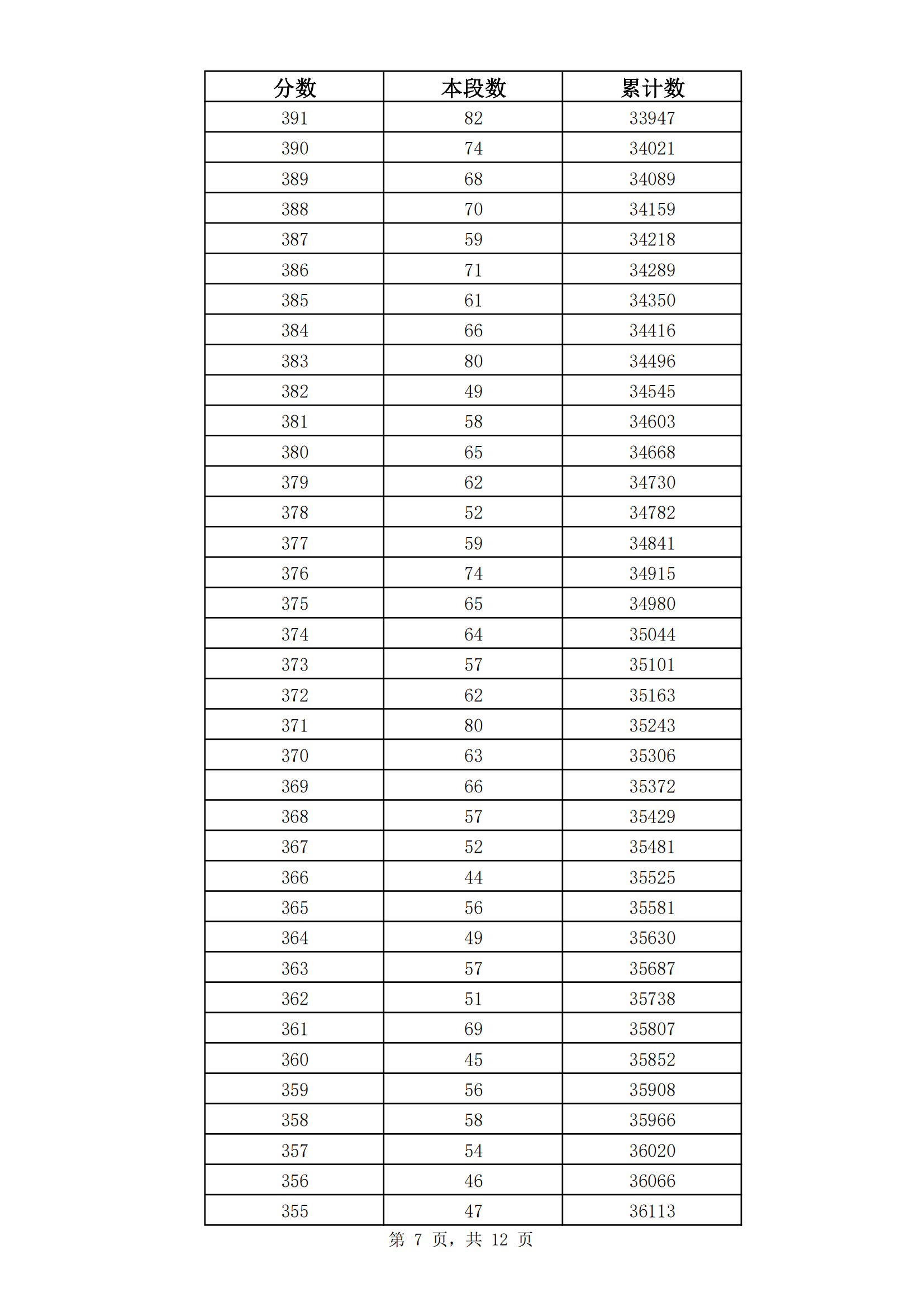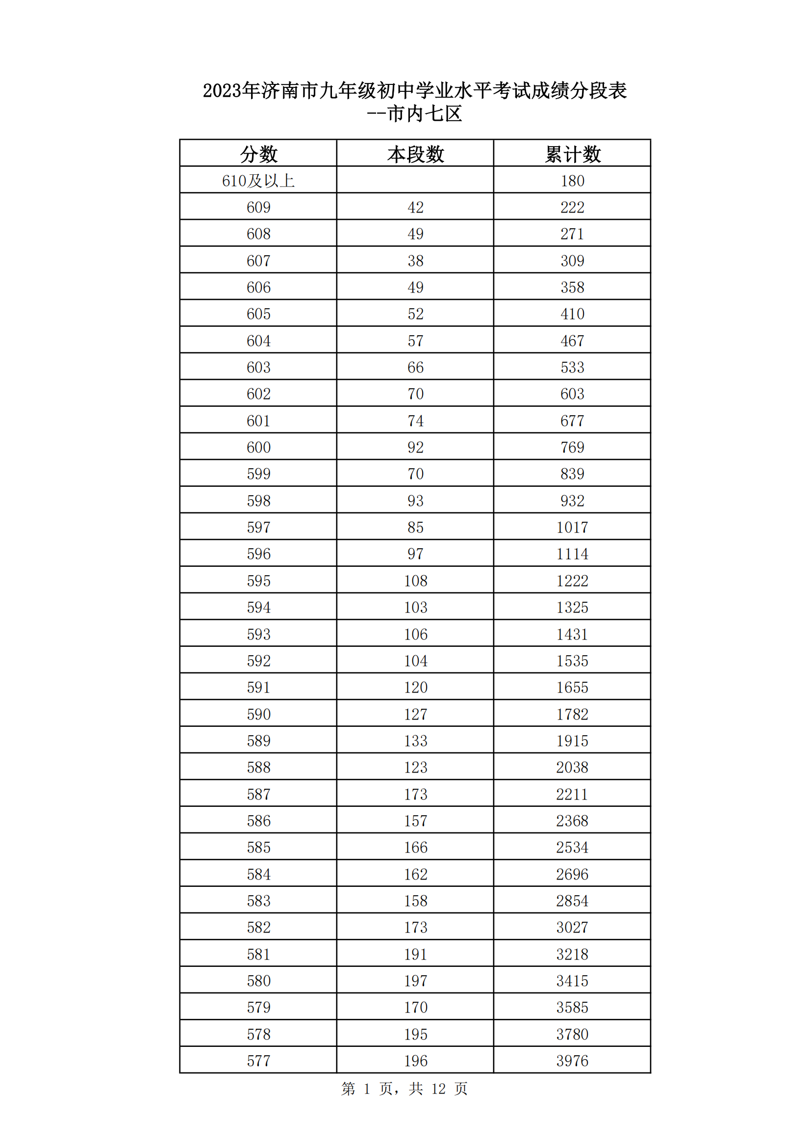 2023年山东济南九年级初中学业水平考试成绩分段表(市内七区)06-30
