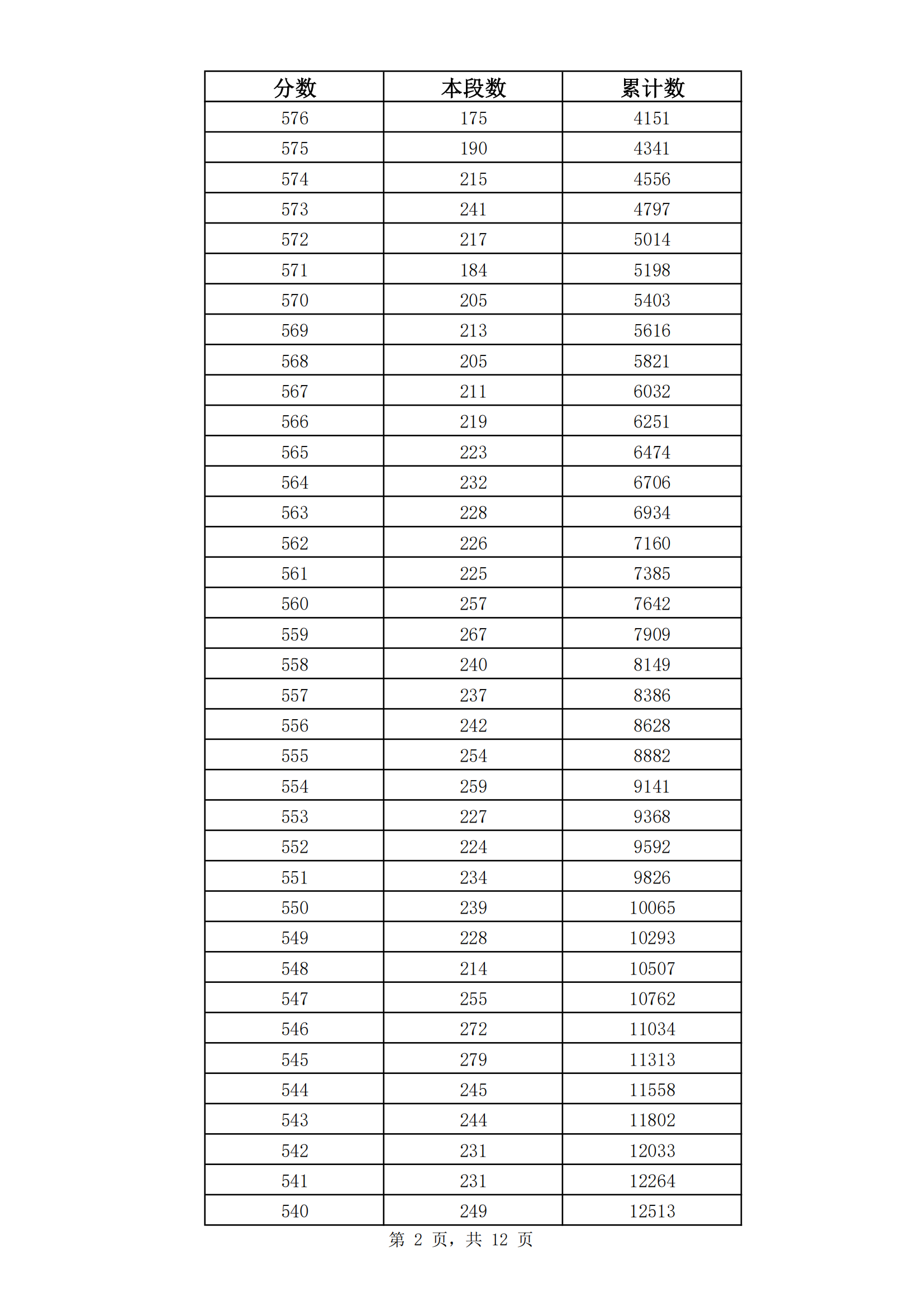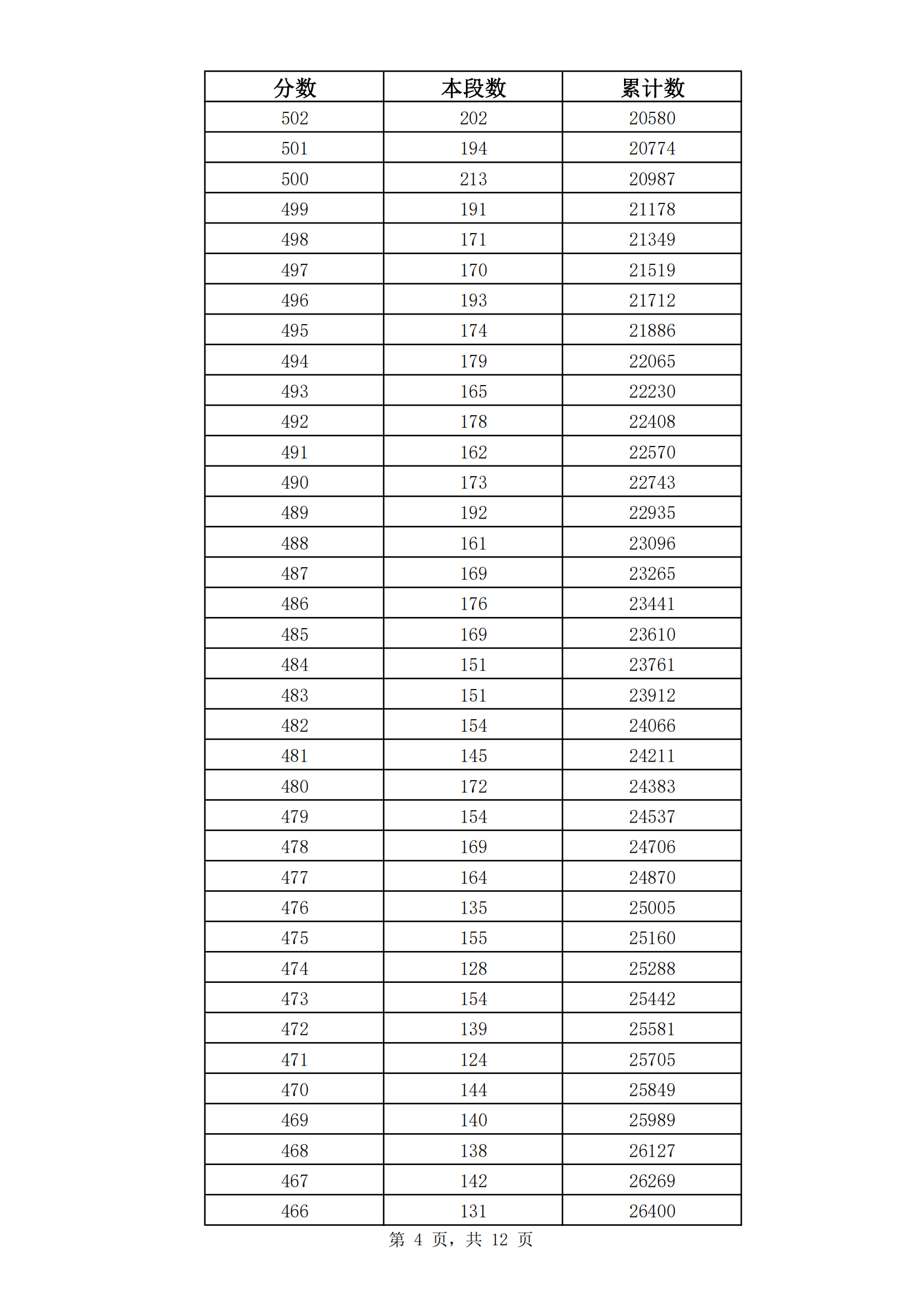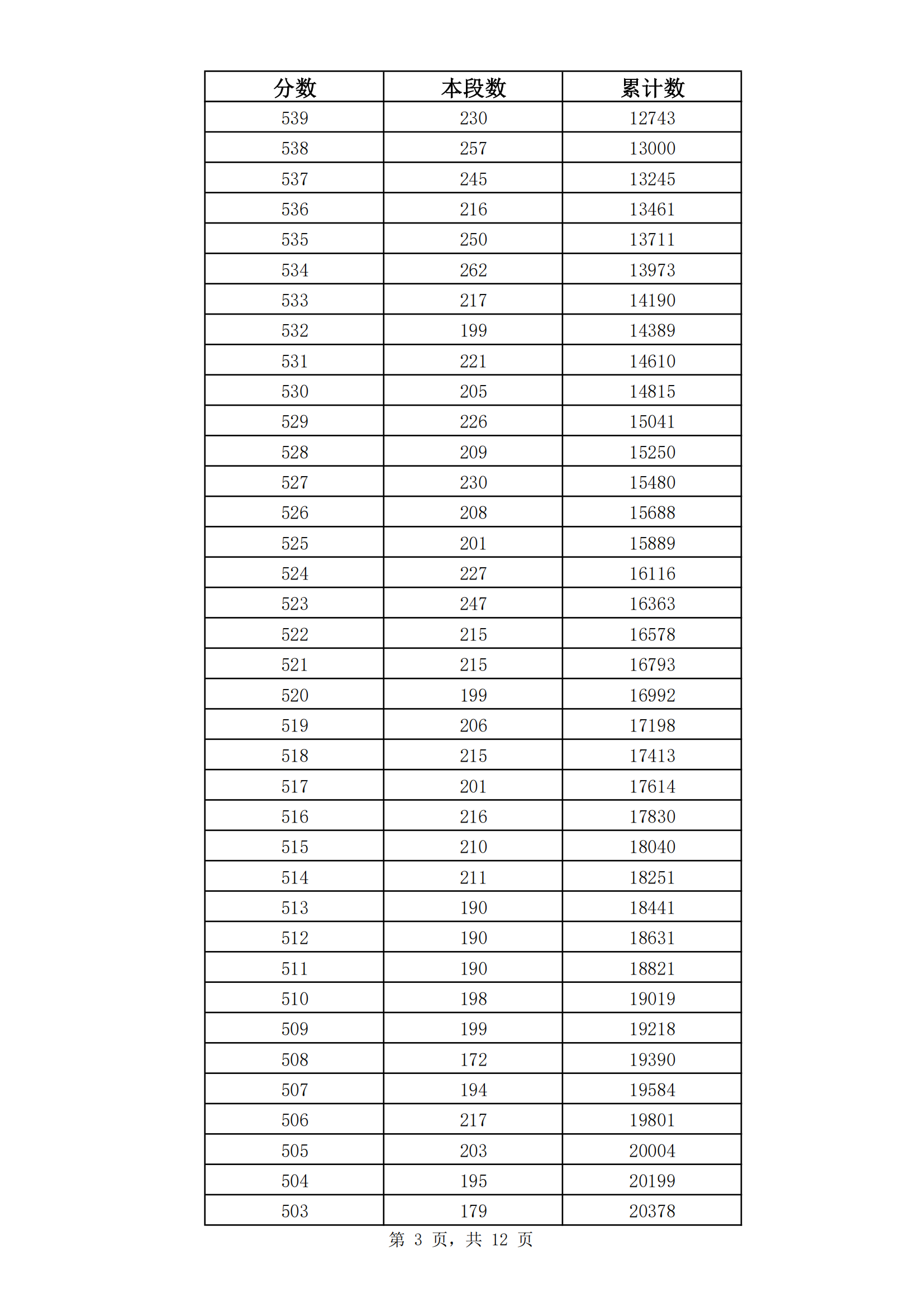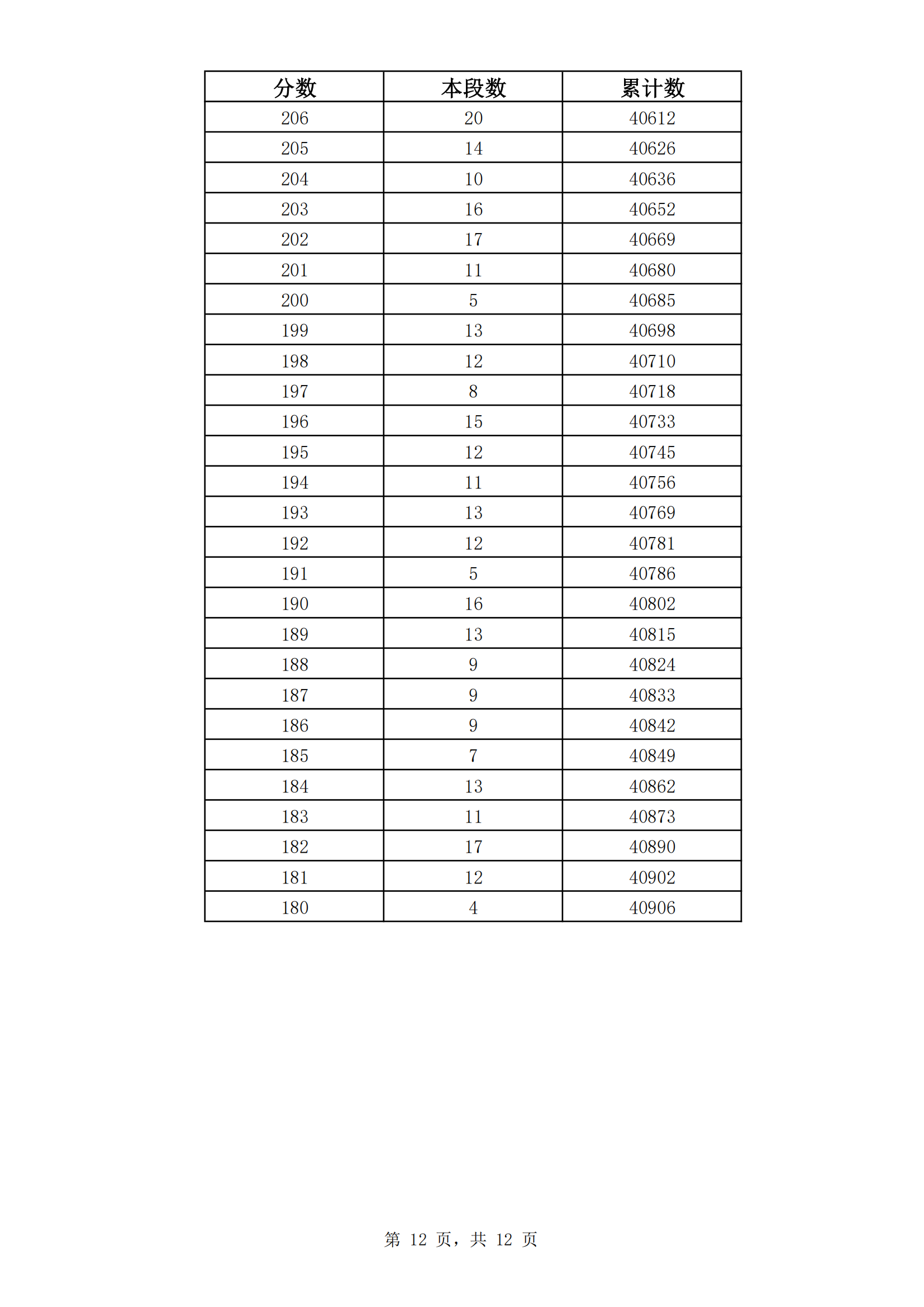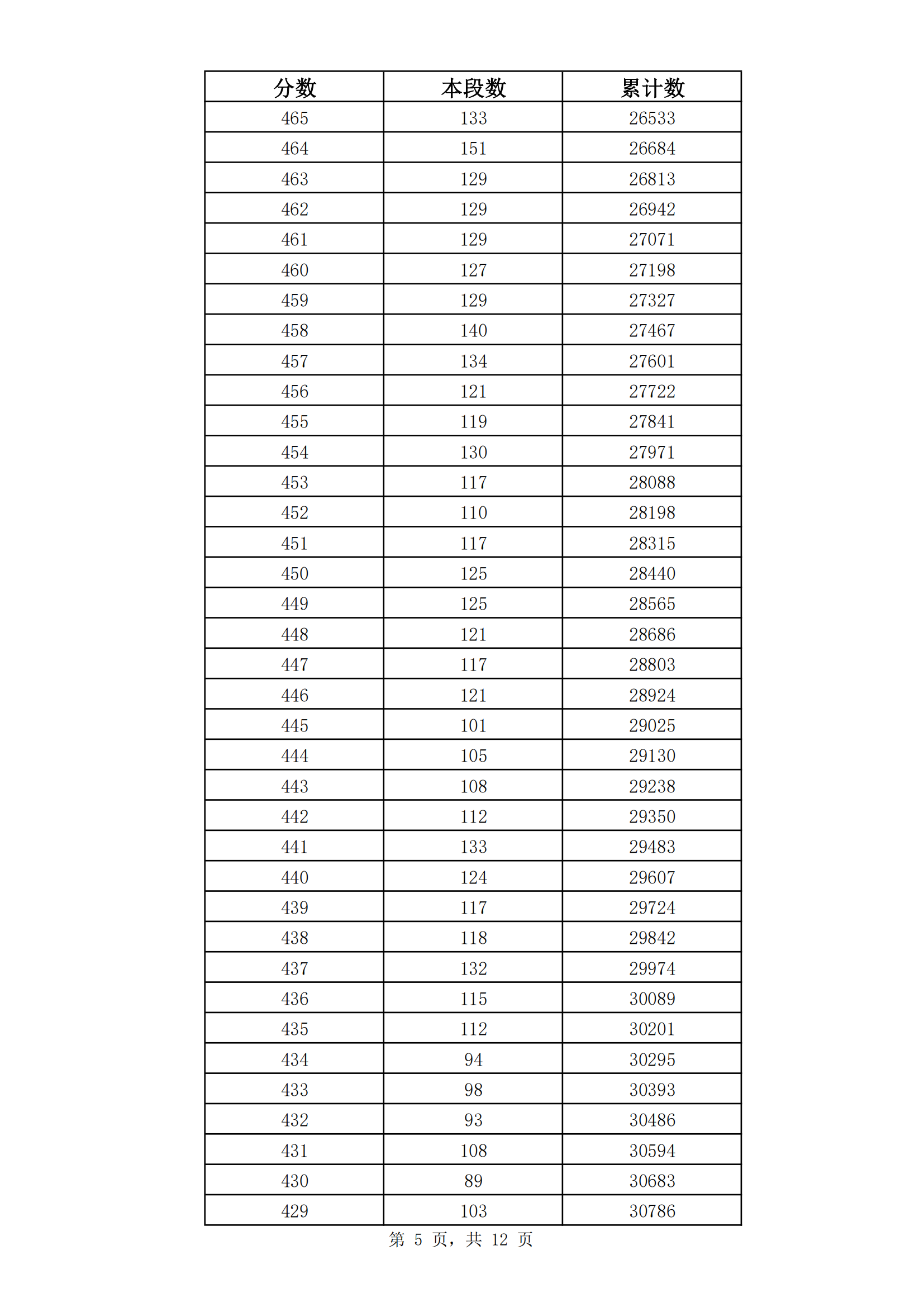 2023年山东济南九年级初中学业水平考试成绩分段表(市内七区)06-30