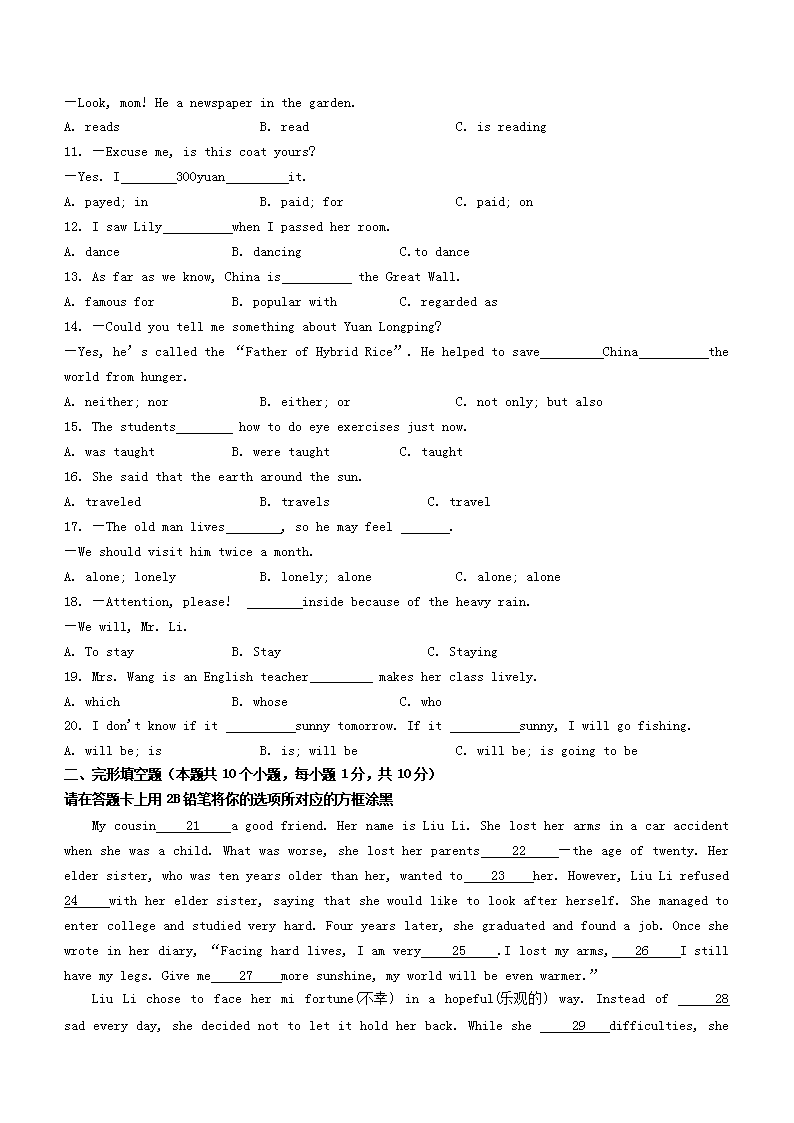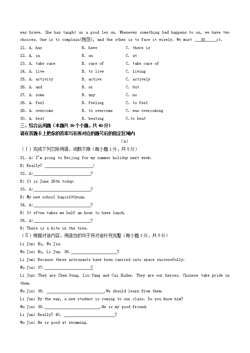 2023年黑龙江绥化中考英语真题及答案(Word版)06-29