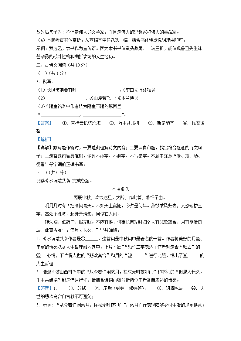 2022-2023学年北京通州区初三第一学期语文期末试卷及答案(Word版)07-29