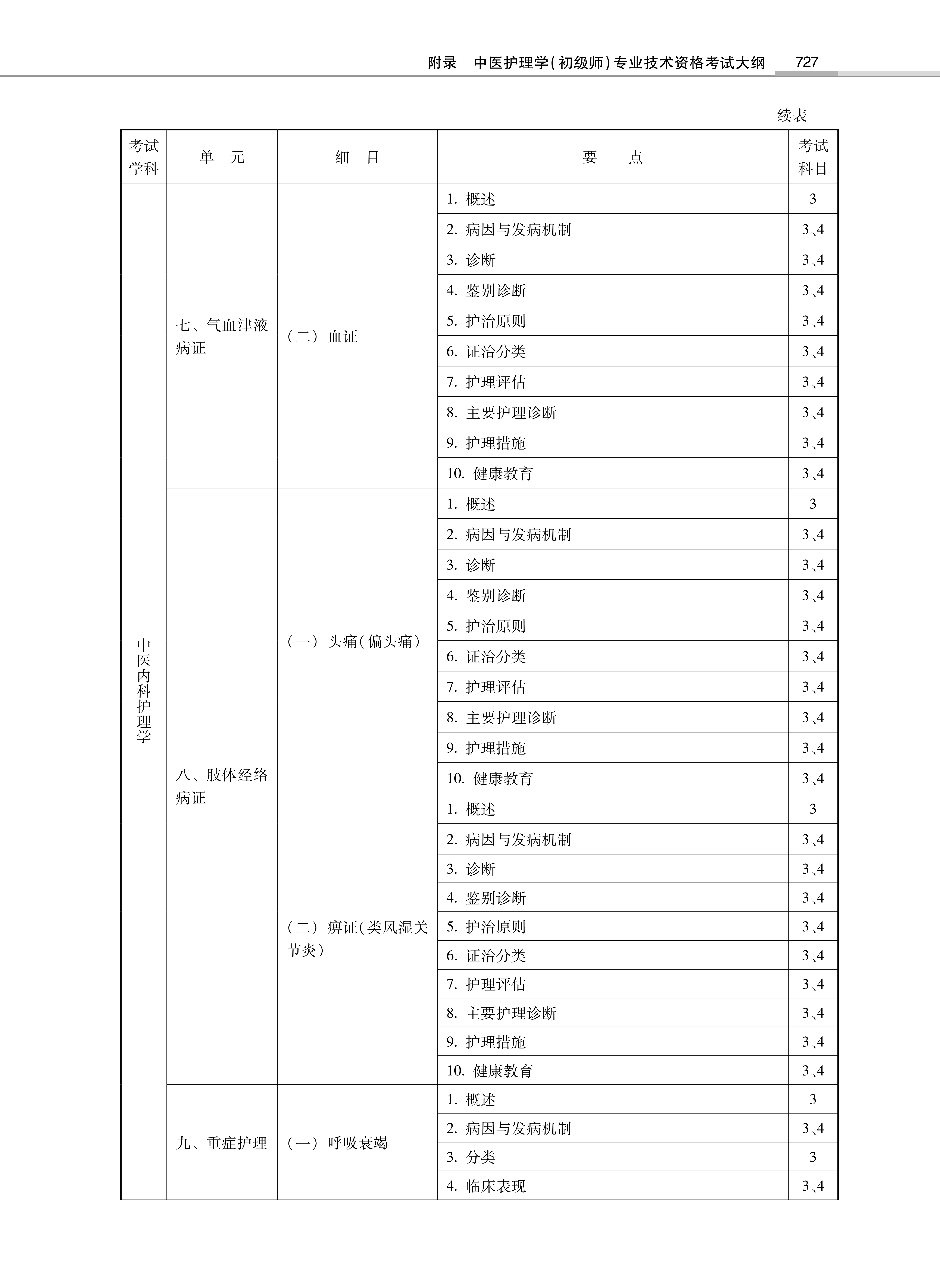 2022年卫生专业技术资格考试大纲-中医护理学(初级师)06-05