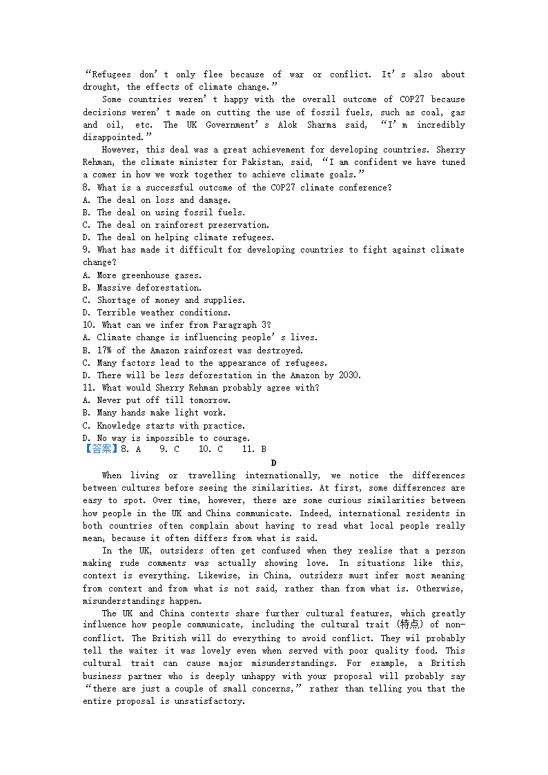 2022-2023年浙江宁波高一英语上学期期末试卷及答案(Word版)10-08