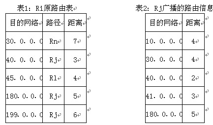 45、 在使用RIP协议的互联网中,路由器Ri的路由表如表1所示。如果它收到其相邻路由器Rj广播的路由信息(如表2所示),那么到达以下哪些目的网络的表项将出现在更新后的路由表中?